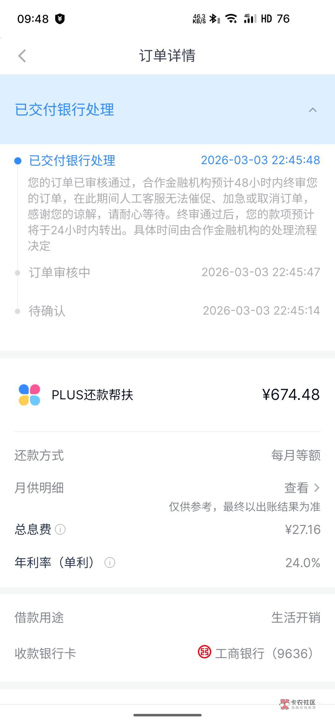 你看一下你这个月的账单是不是这个金额就行,如果是那就放款日才给你放款,因为这个订单帮你还账单的,还款日那天也有可能放款失败。