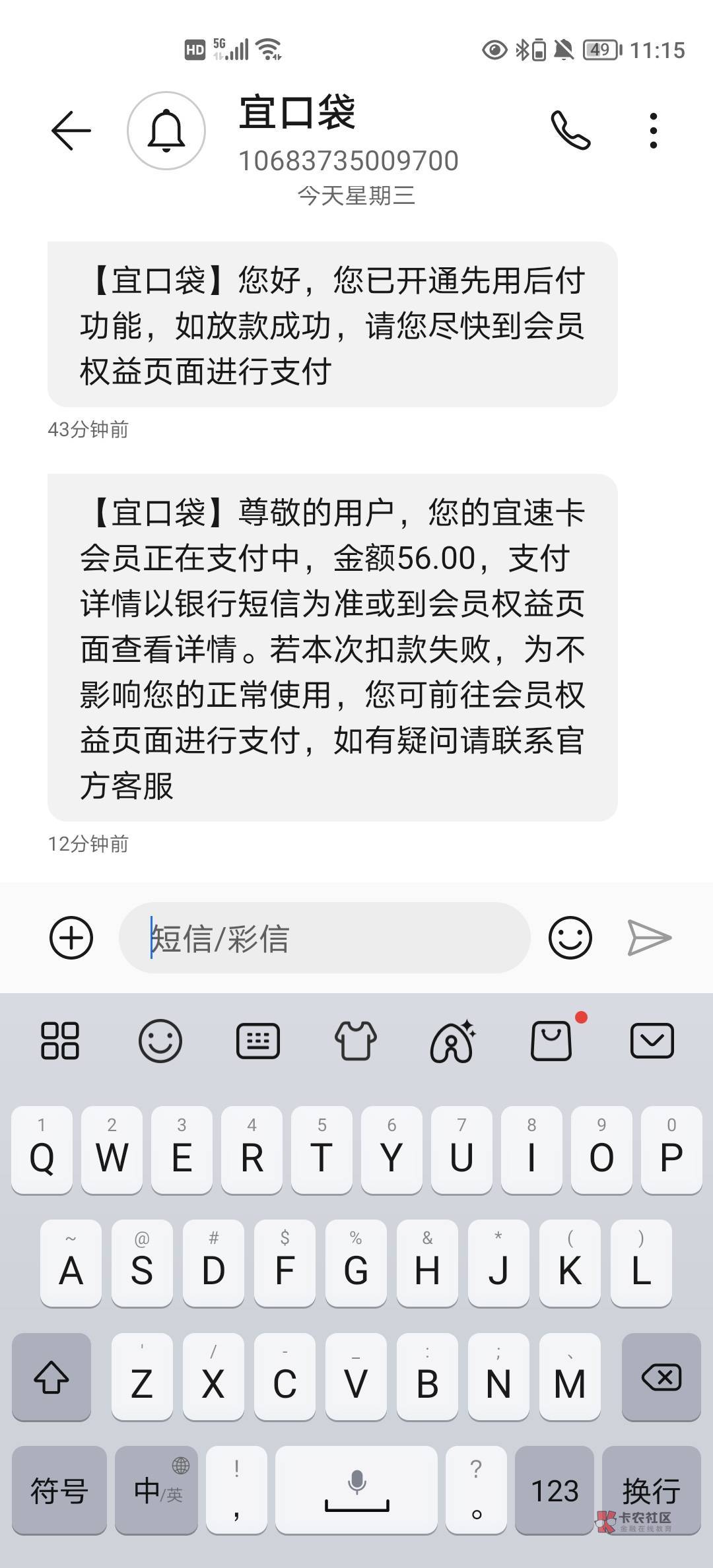 卡里下次下款划扣,并且不能使用先用后付了,直到付了这次56