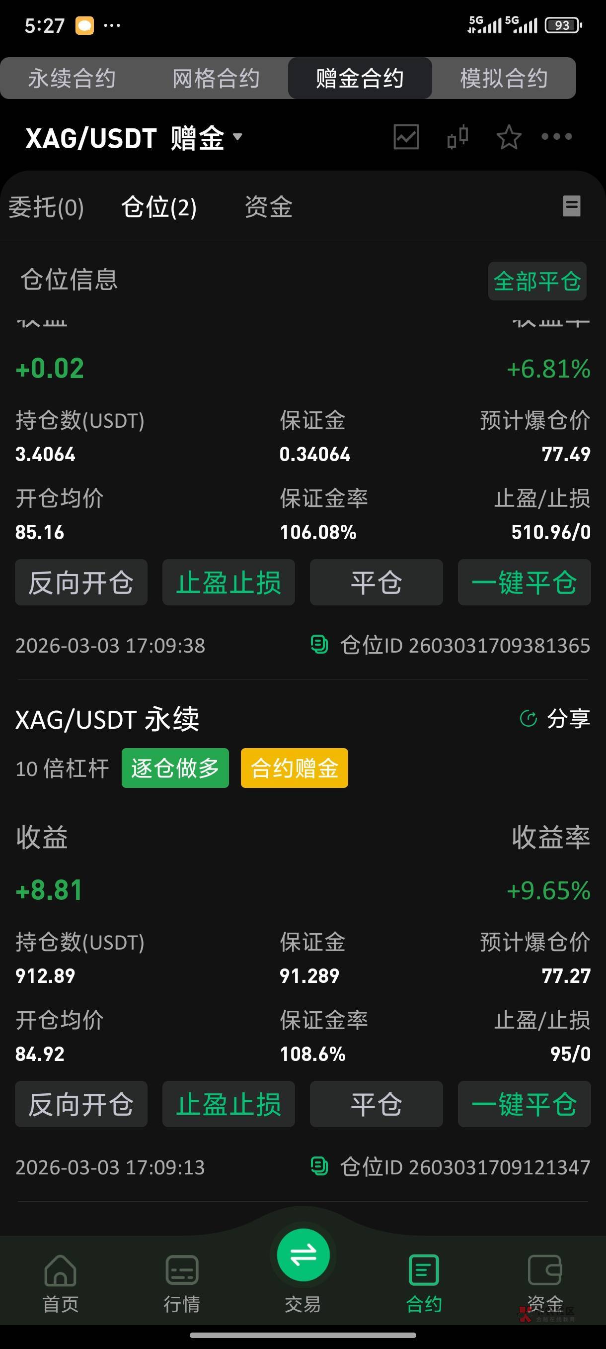 没平仓做空,昨天最多亏到剩50,目前又盈利20多点