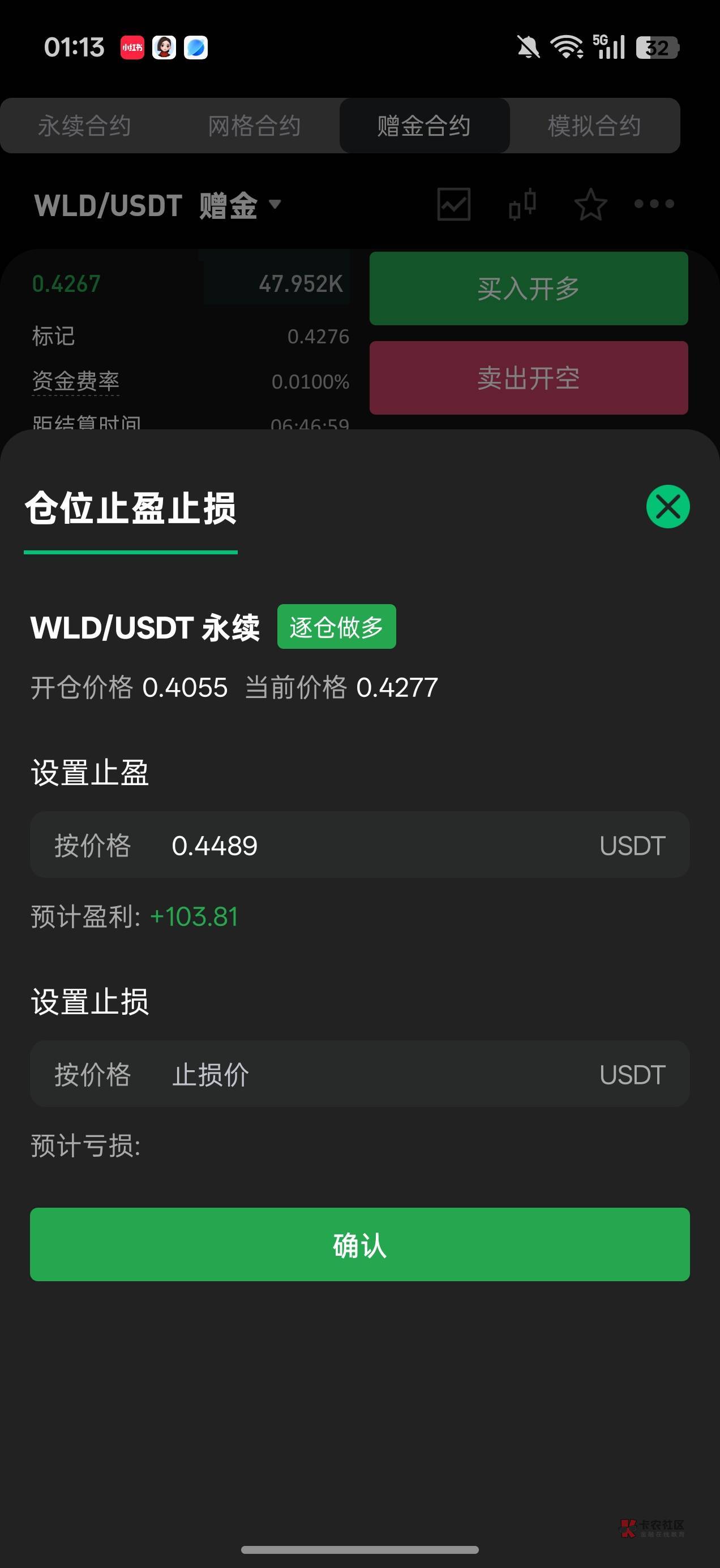 止盈里面输入这个币的价格,