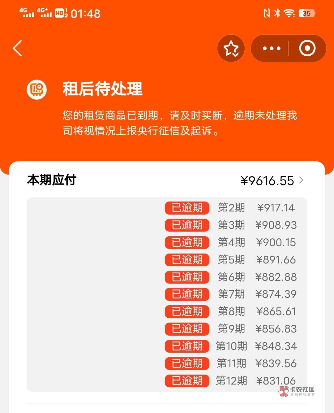 7台租机,拿啥还啊,去年刚把个人的账全部清掉。网贷需要还的还有15万左右呢。逾期好多年了都。房贷跟租机1分都没还。但还是不小心被租机划走了500。冻结的时候忘记切回微信了。出去做事。老板扫码付款。付款我冻结的微信了,天塌了。