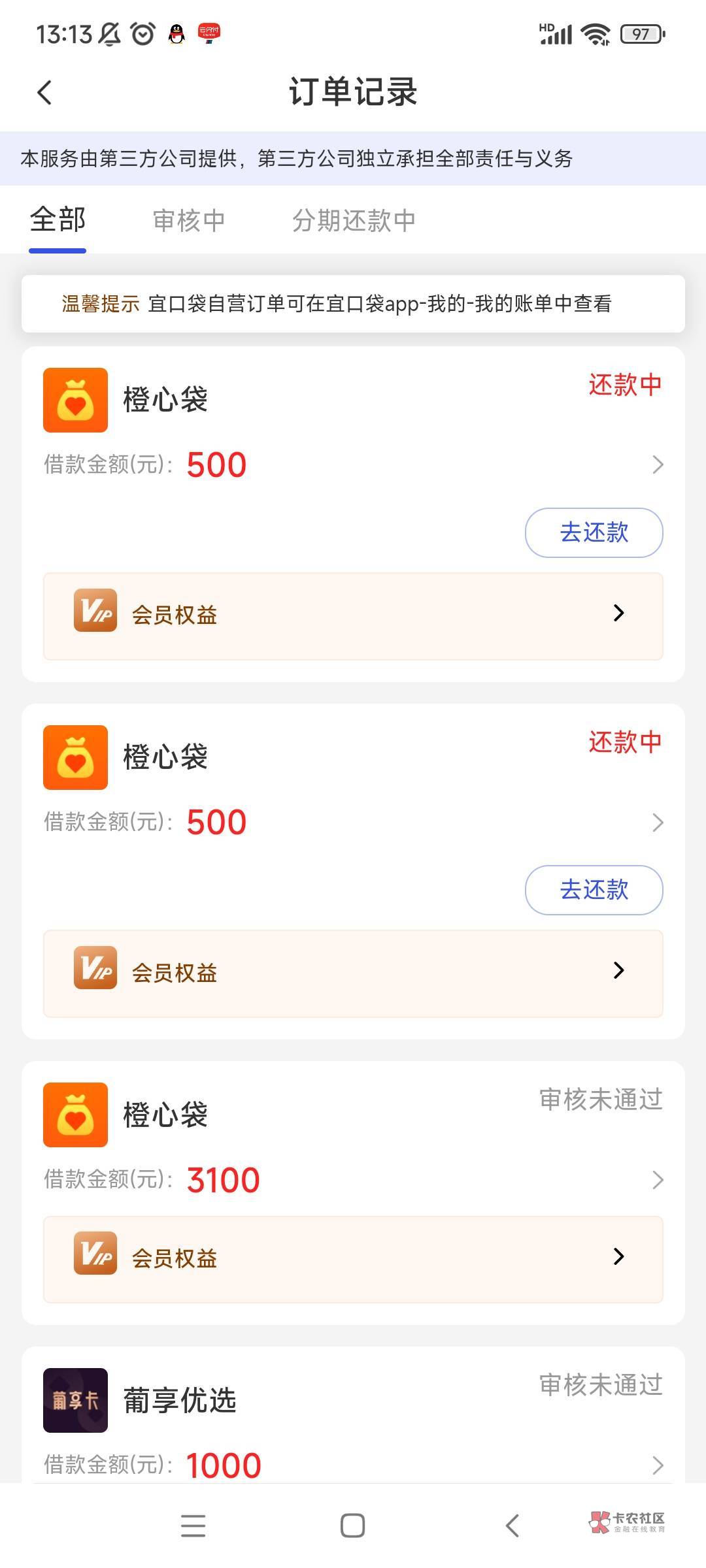 前2比有拦截一次会员,后面申请没有先想后附,自掏腰包付了56也是几天才到账,现在都给他扣会员不拦截了,等下的差不多去客服那退会员