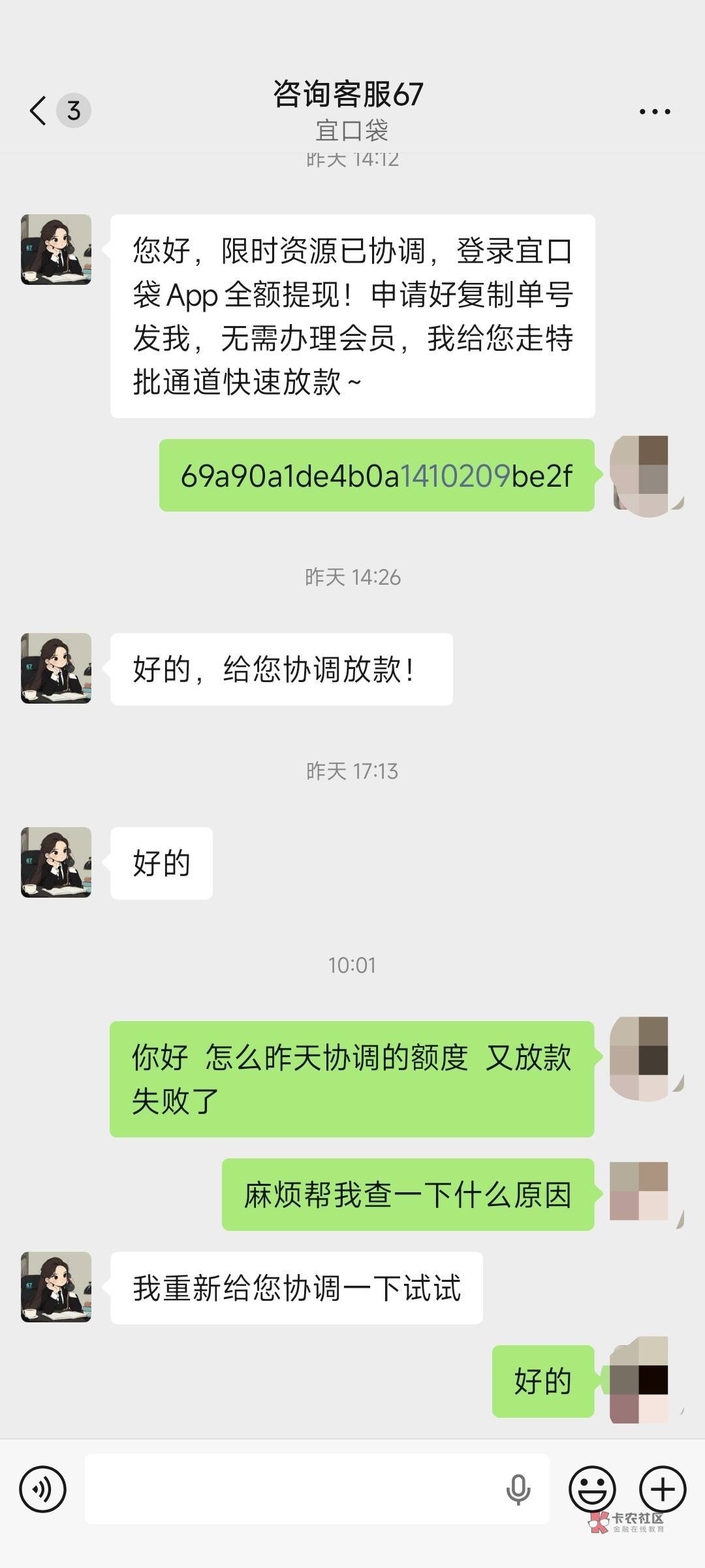 加我自己 已经三个找客服67 协调的放款失败了
