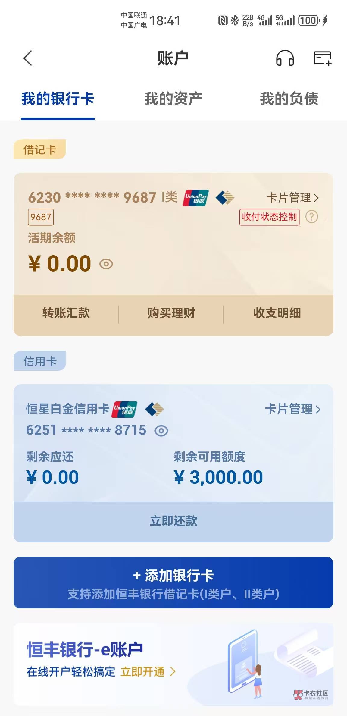 我欠恒丰信用卡一万多几年了