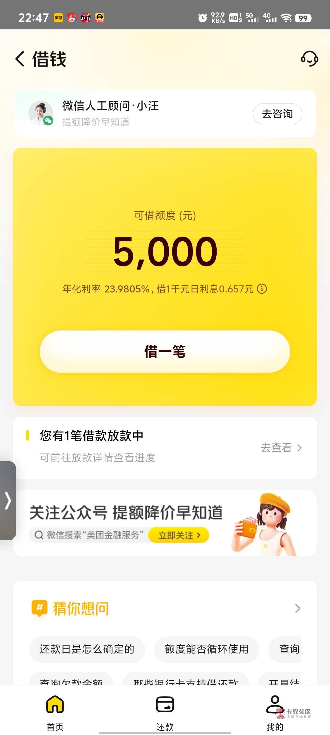 这叼美团最容易T路,不借完,还完不一定让你借了。