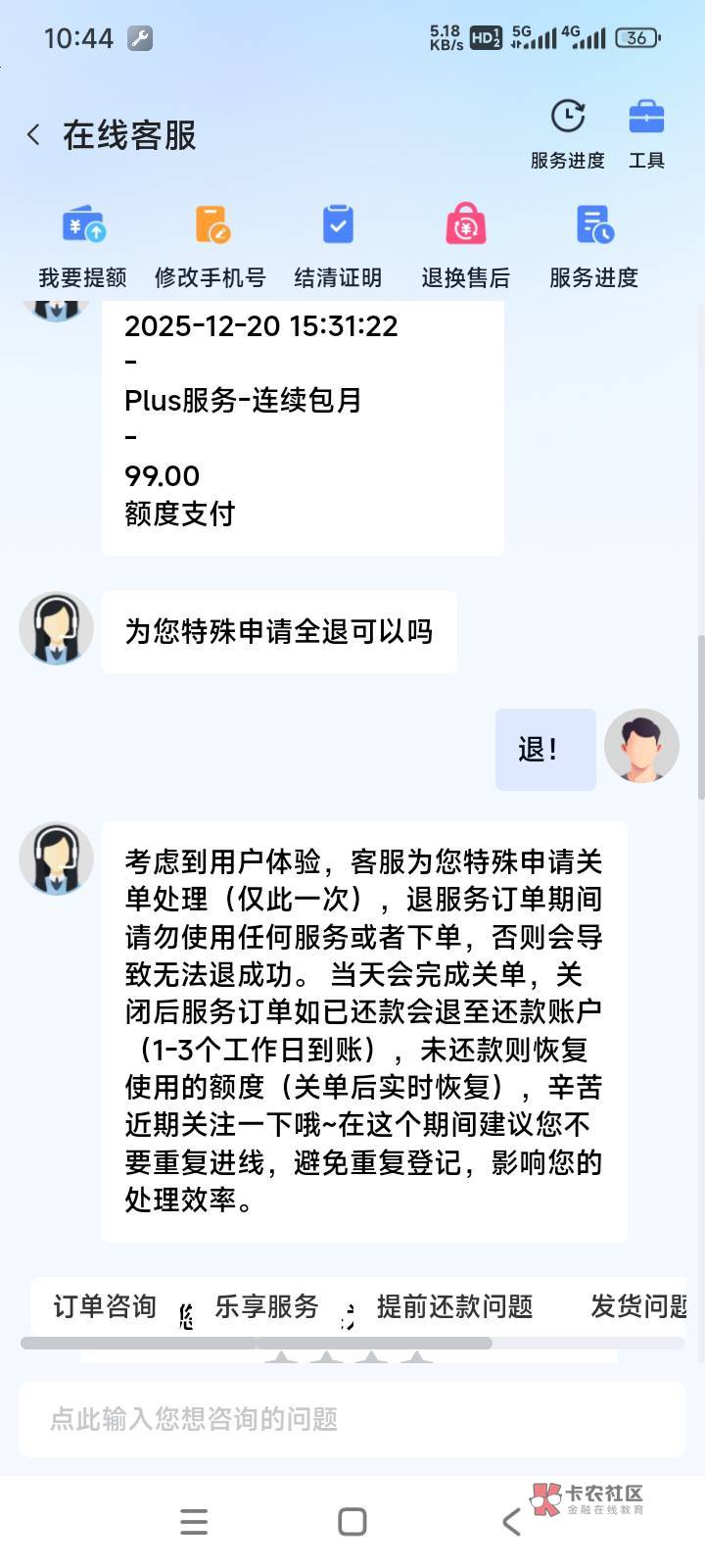 我开了三回退了3回你要注意你的态度啥也别说就说没额度退会员就完了.说那行没用的人家客服都不爱D你