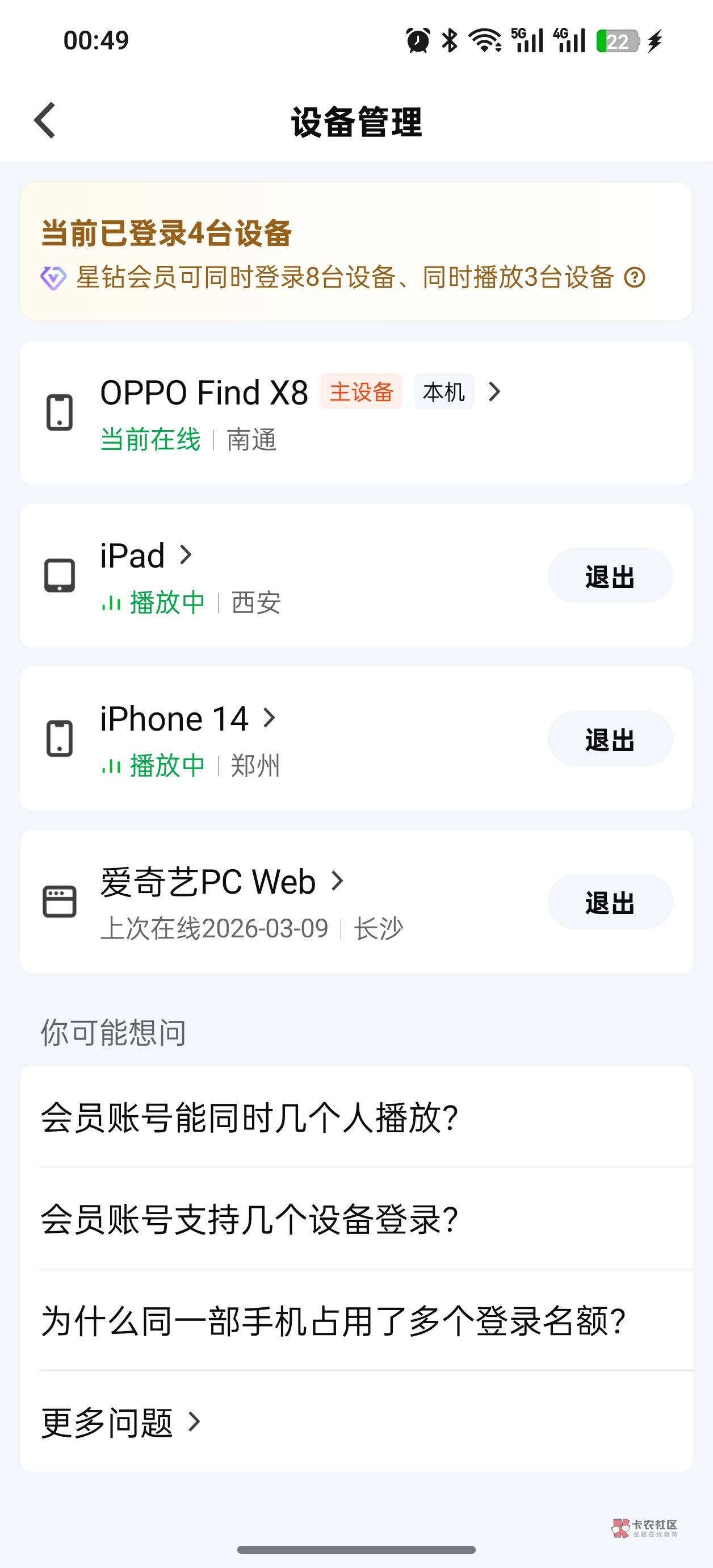 一个a奇艺能同时三个人登录看嘛?