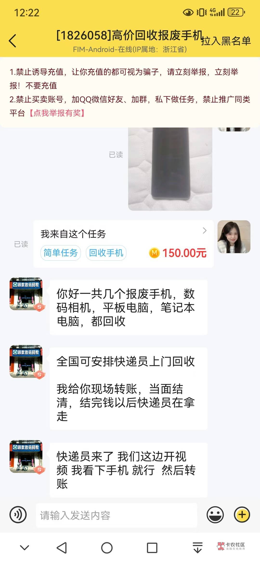 这个烂手机不是150吗?你去秒单,上面都有人收,直接顺丰↑门的,然后打个视频显示你把手机给快递员,就立马给你打米,我上礼拜出了一个