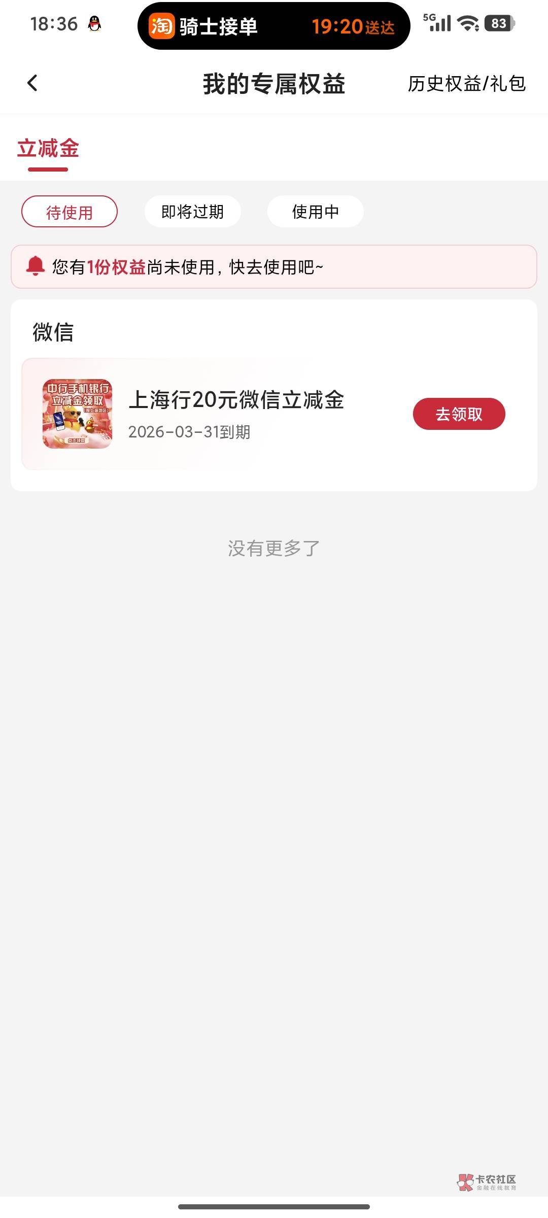你不会去我的权益里面领取?