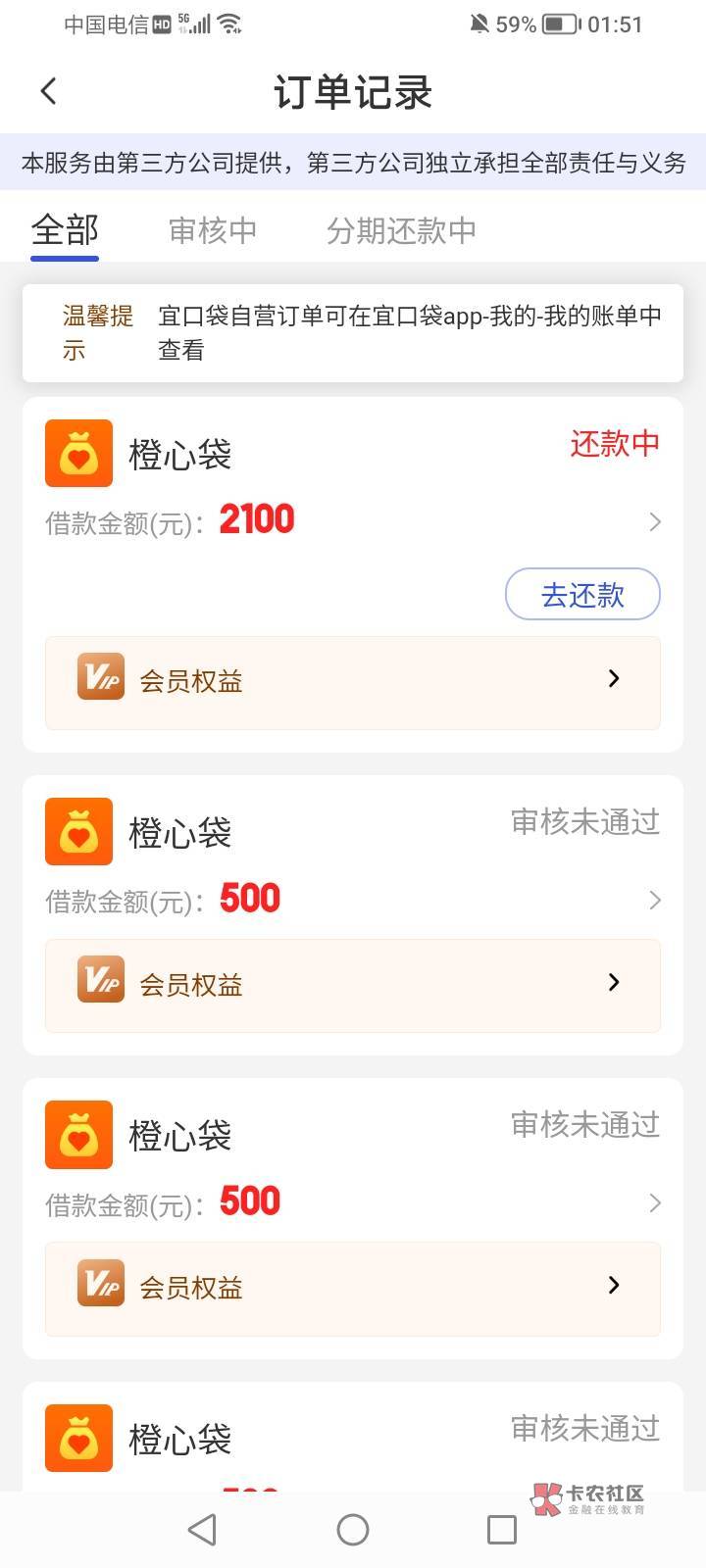 我的是宜口袋本体不是橙心, 橙心我一直有先用后付下了一笔500后 再想借没出先用后付只弹出来先支付付款后还是拒了会员费秒退