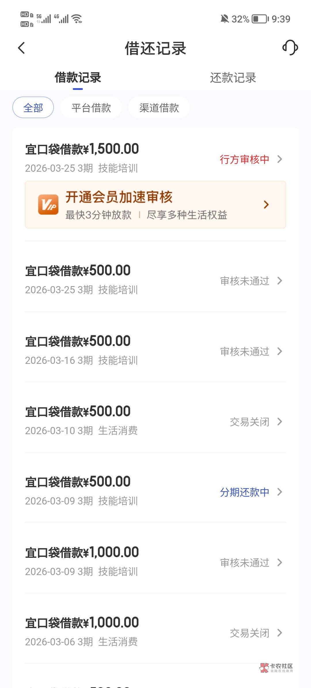 橙心袋退了三笔,申请都没有提示有会员,宜口袋两笔还没退