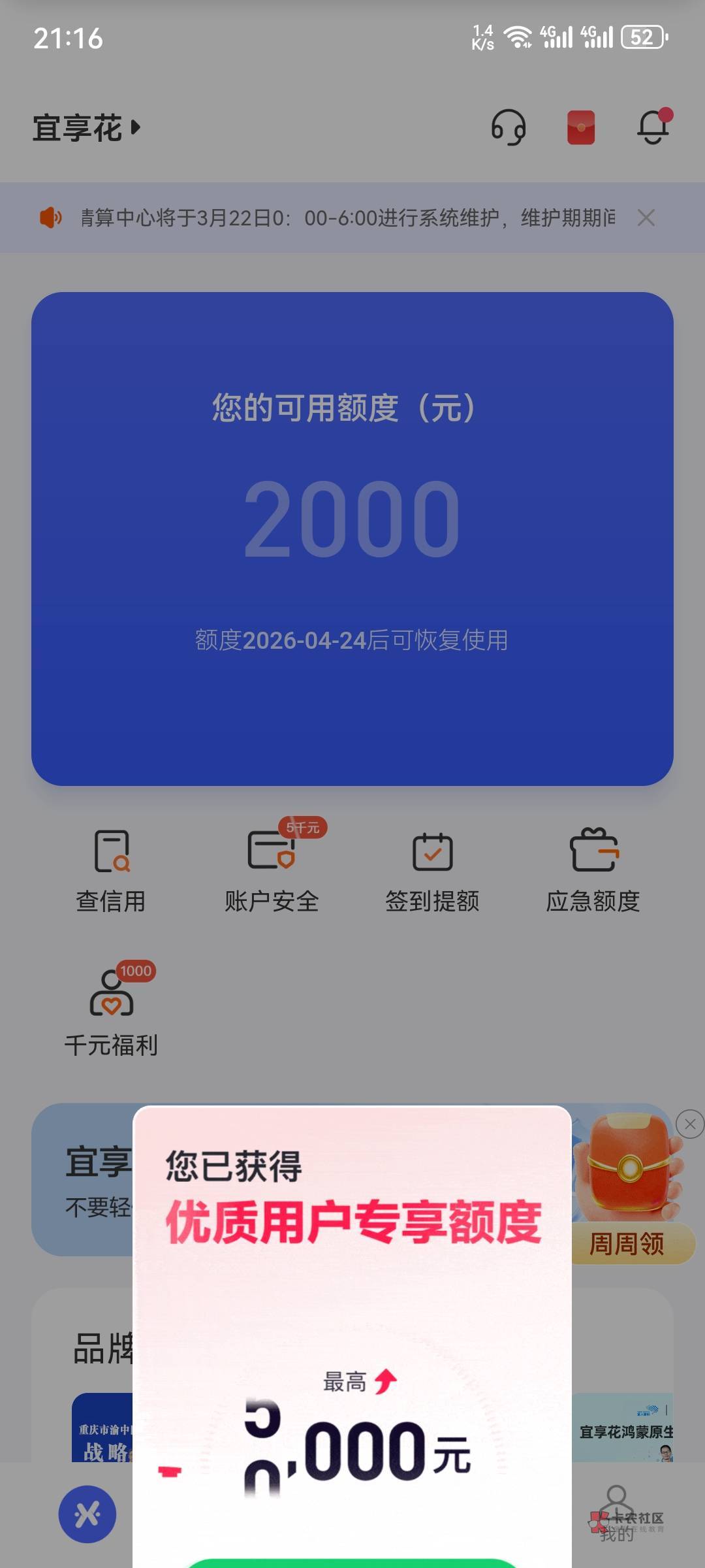 注销再来2000额度了