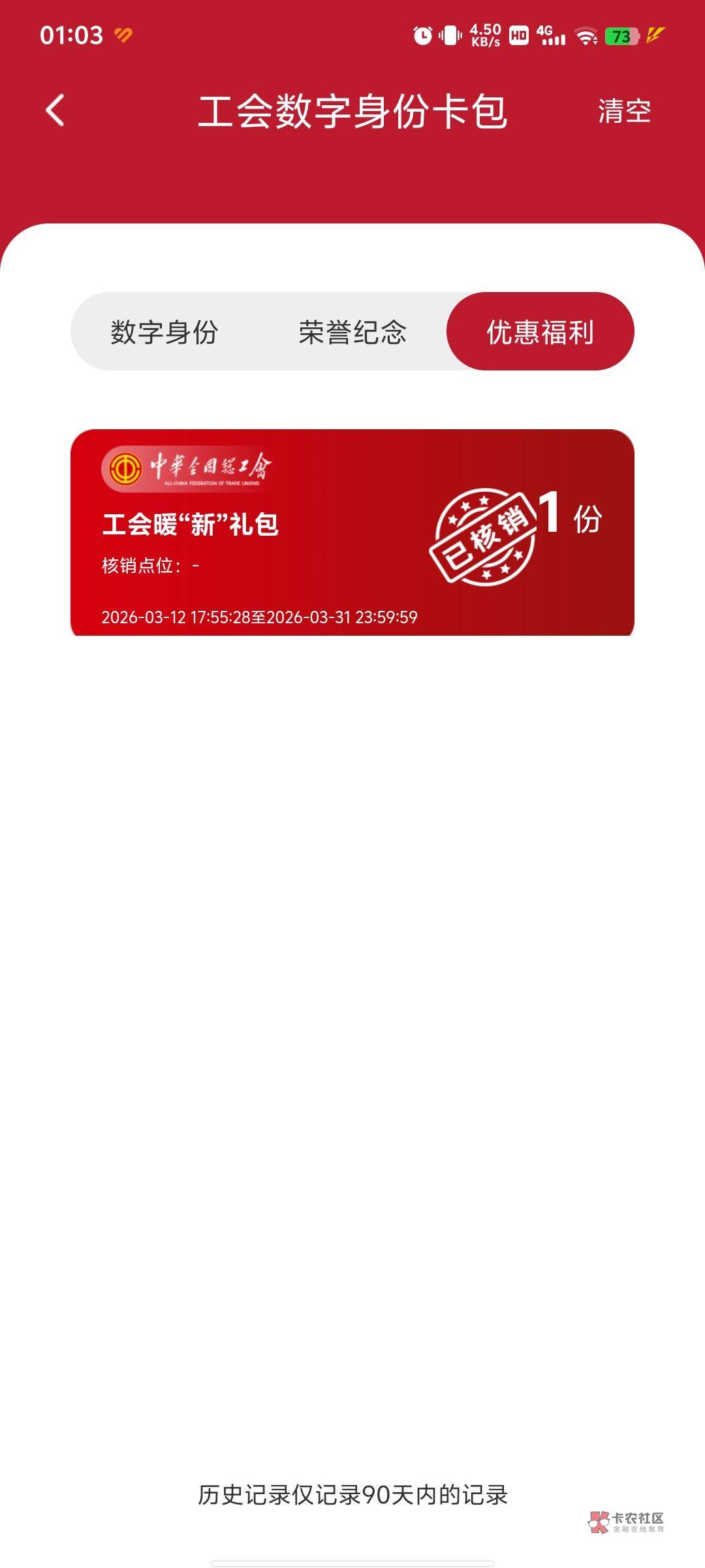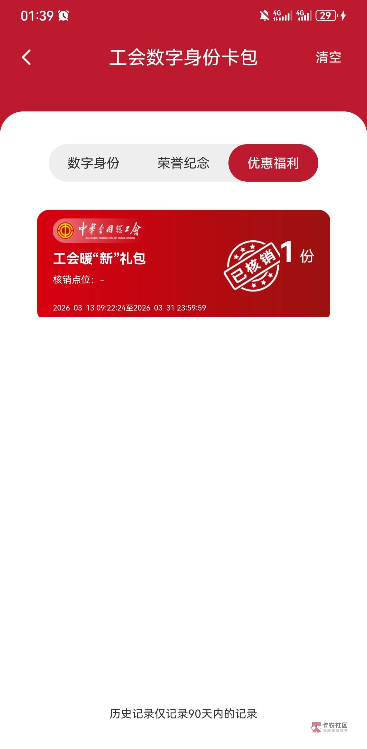 点我的然后点数字身份,然后右上角三杠,然后管理,再点历史记录,点优惠活动