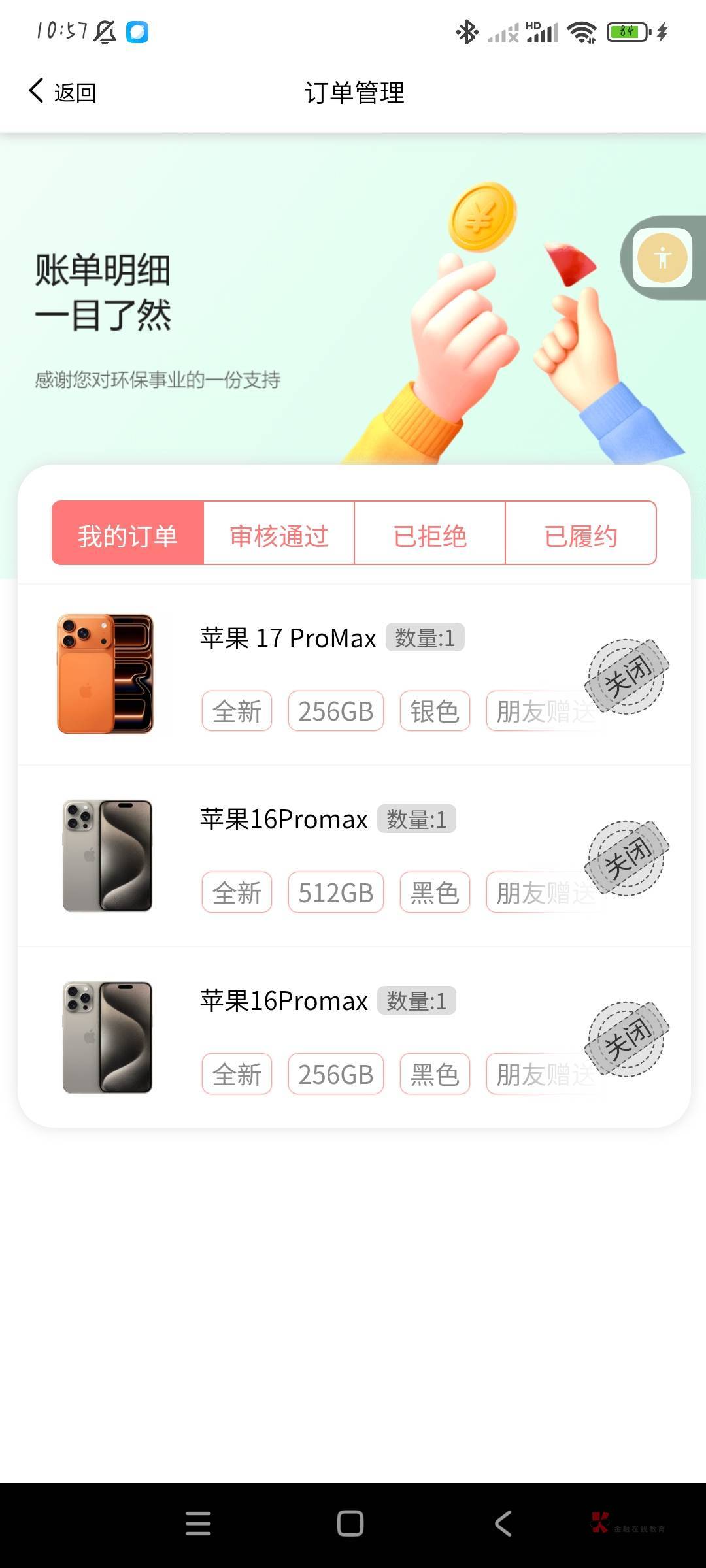 尝试三次都让我把订单关闭了,100元有个屁用