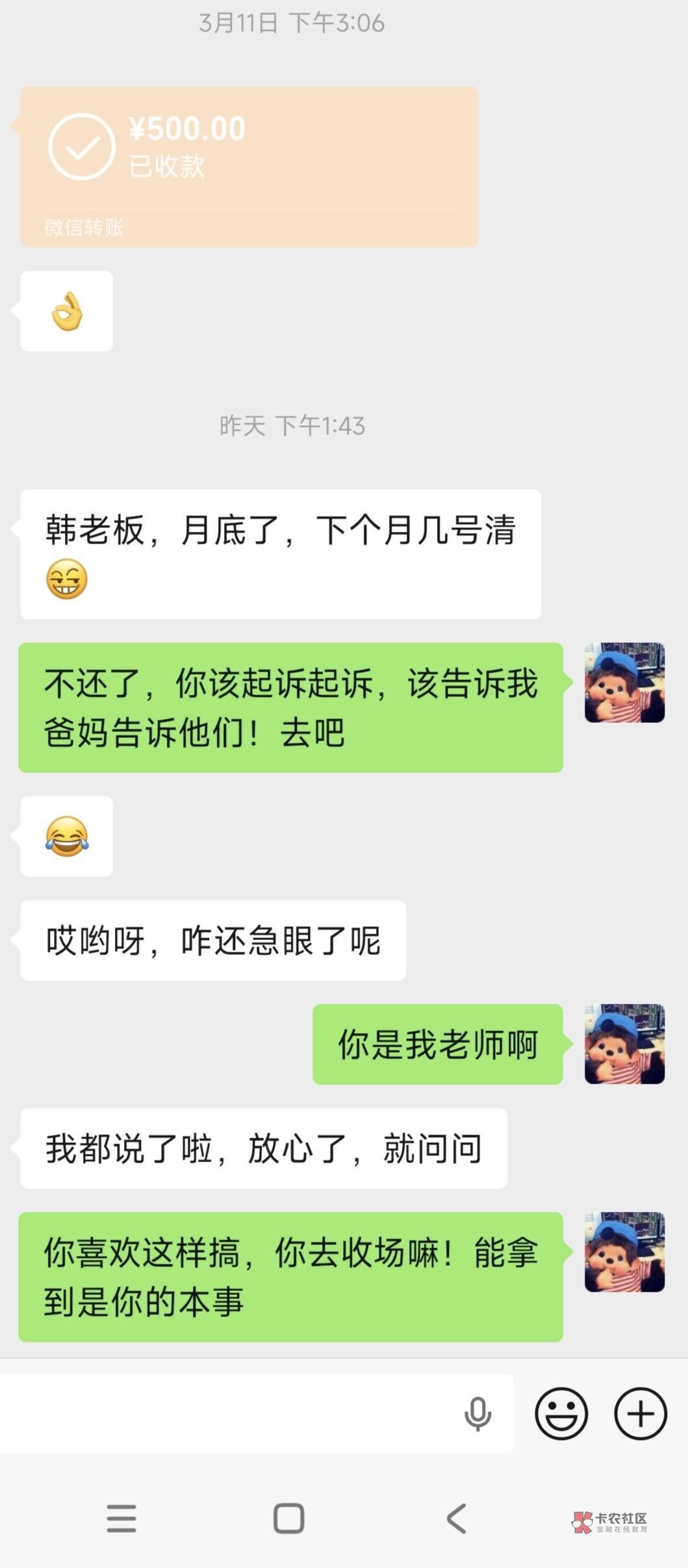 要利息我认,但是你别背后搞我啊!跟我爸妈说七说八的!搞得我回去给我爸拿钱还他都拿不了!这不是搞我