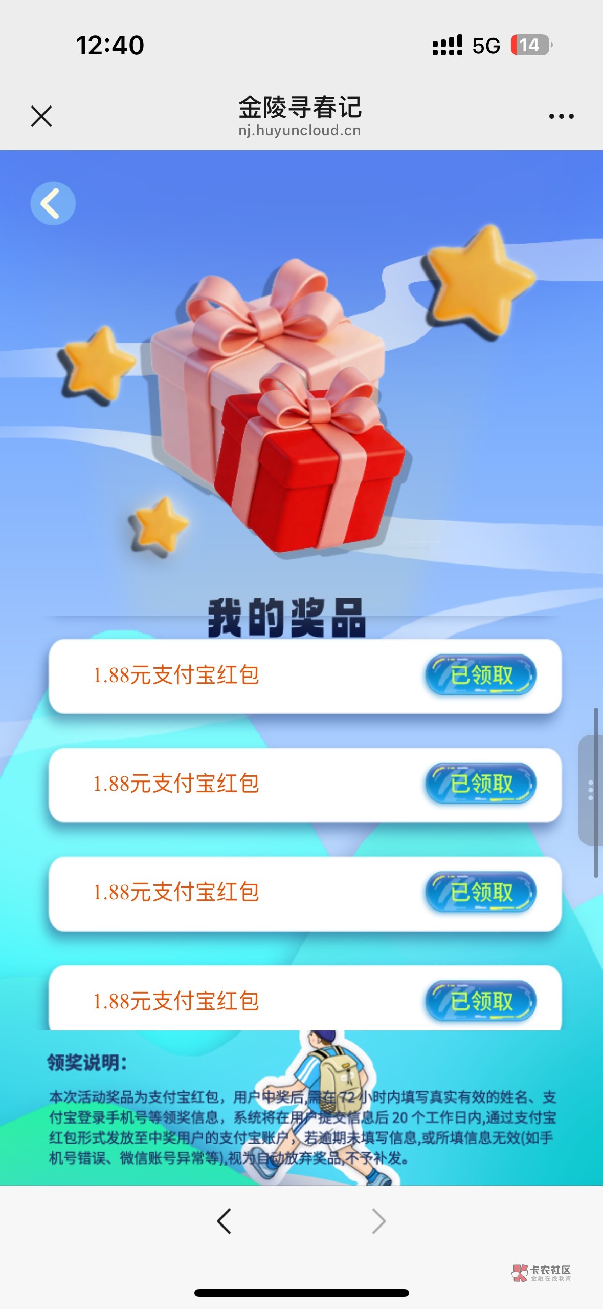 奖品在哪儿 我点我的奖品进去看到10个1.88 已领取我都没有领过