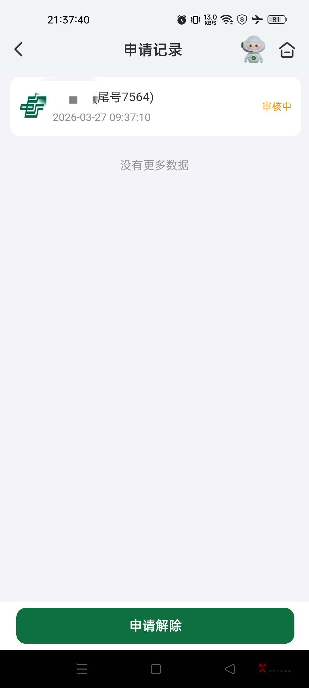 我邮政上次非柜去银行解开了 非柜大概有个两三年,我在柜台,他也叫我线上申请,但是不给过,然后叫我填了个表,就给我解开了