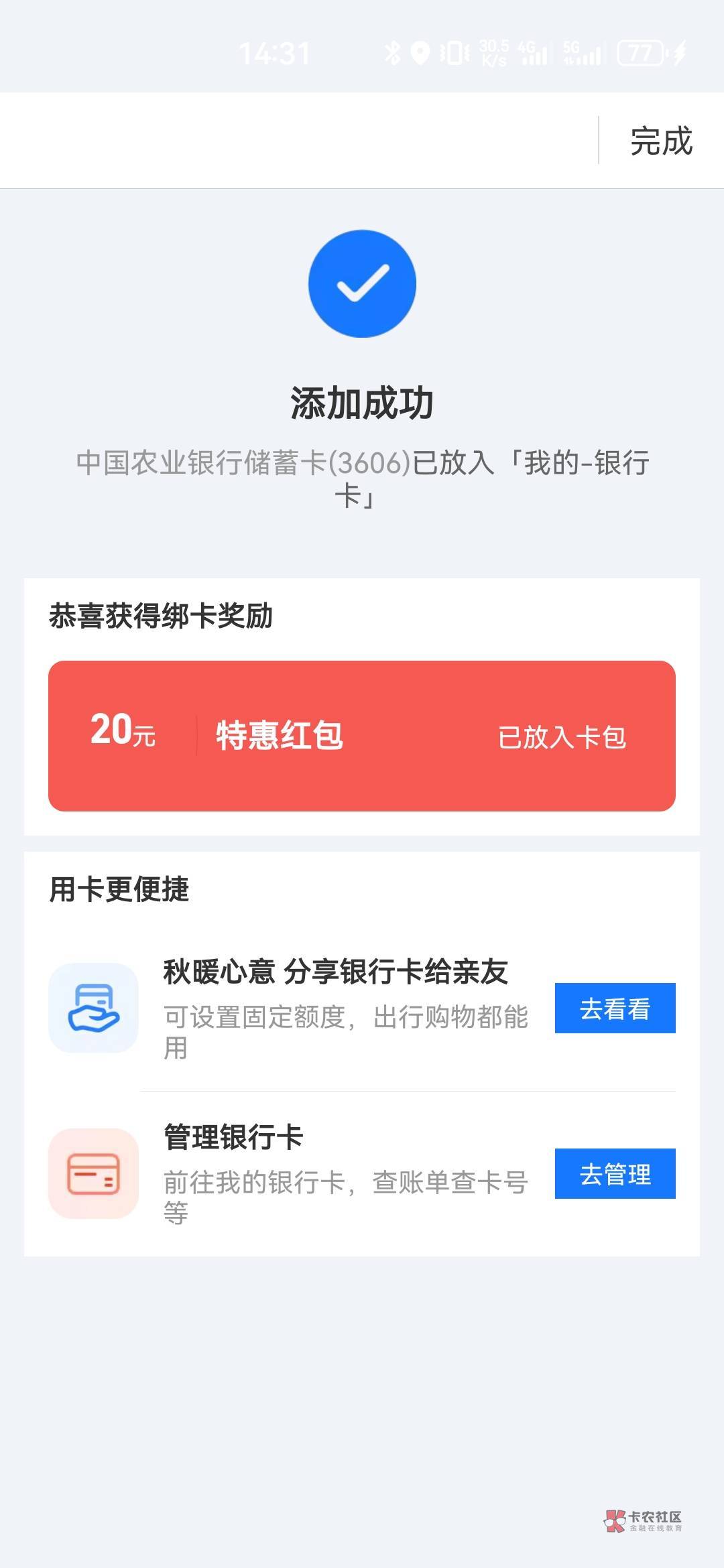 卡号没用,得看你红包列表有没有这个二十