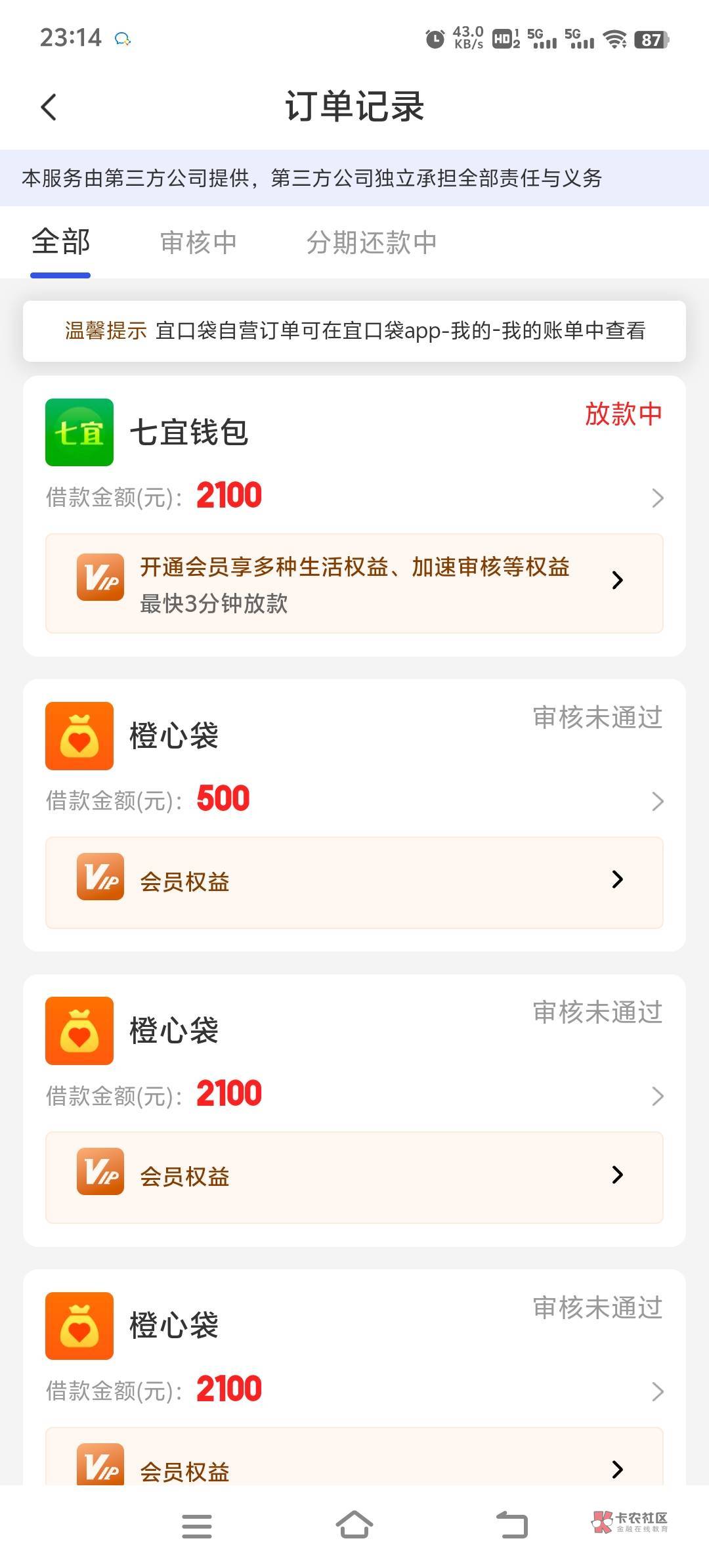 橙心和宜口各下500没逾期,还过一期宜口