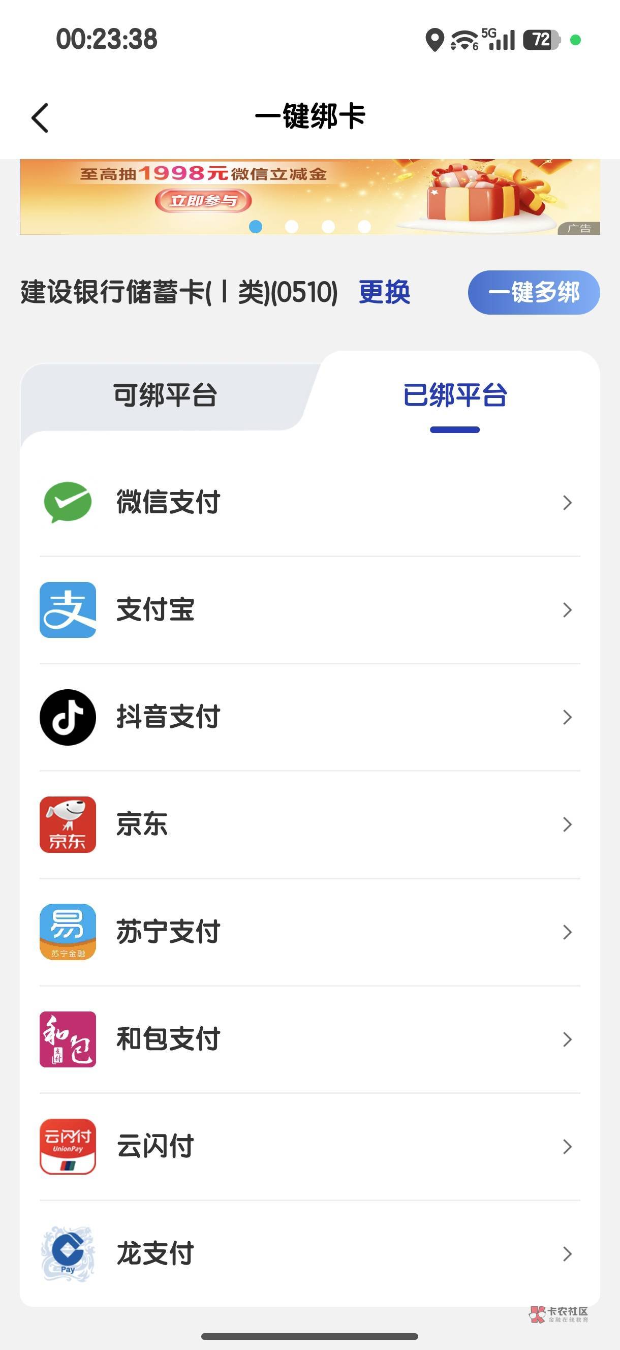 5到了,但是建行找不到解绑,不解绑不会后面扣费吧
