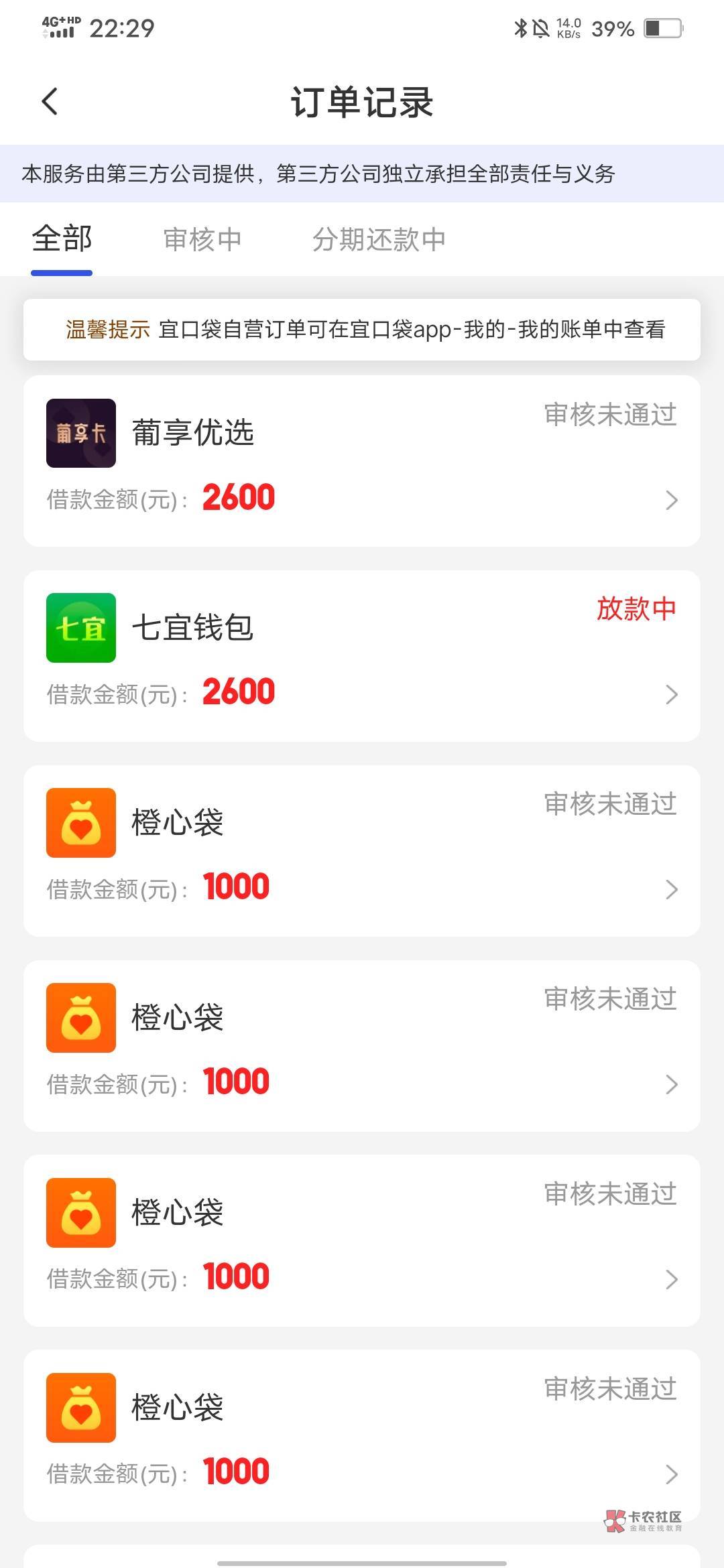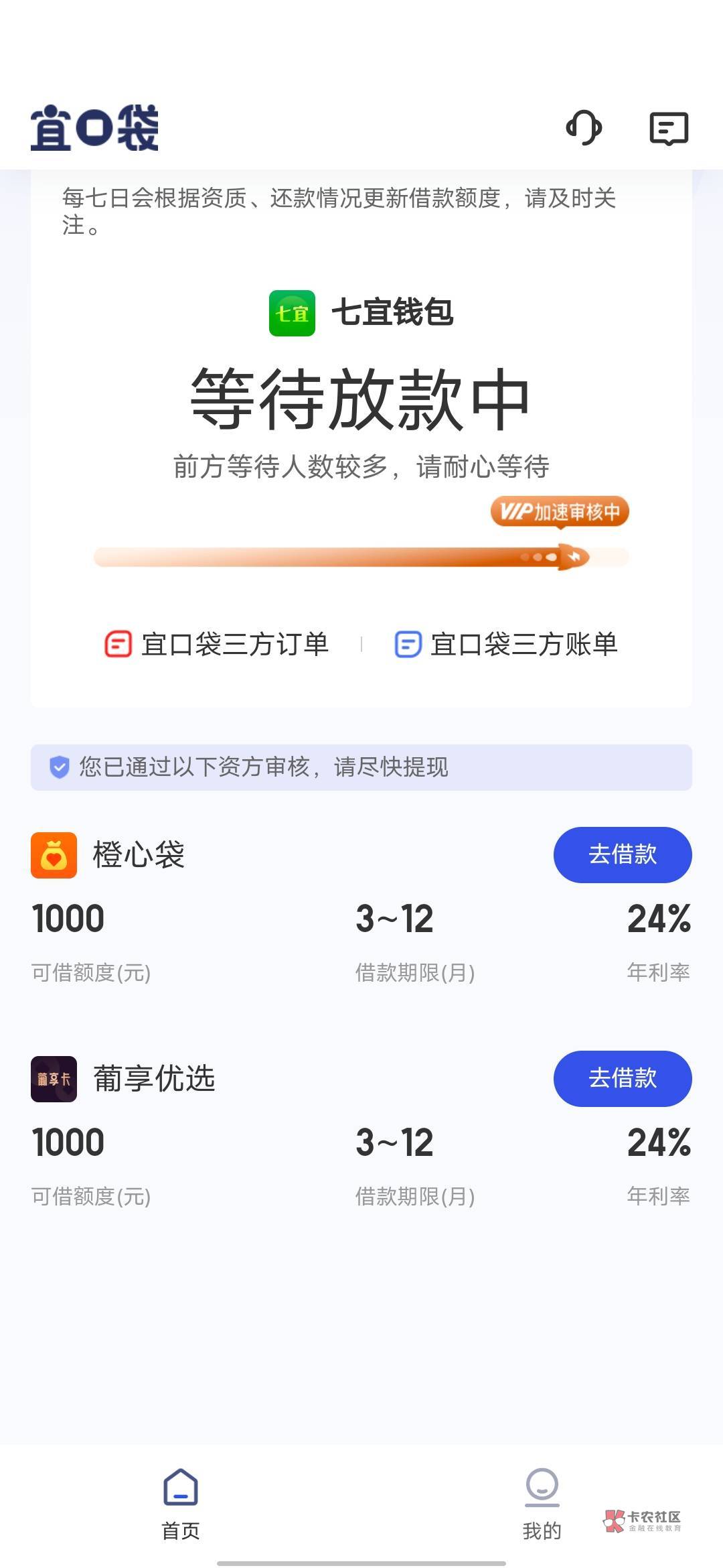 橙心贷,七宜,27号到现在一直放款中。俩个都是1000改500会员也付了
