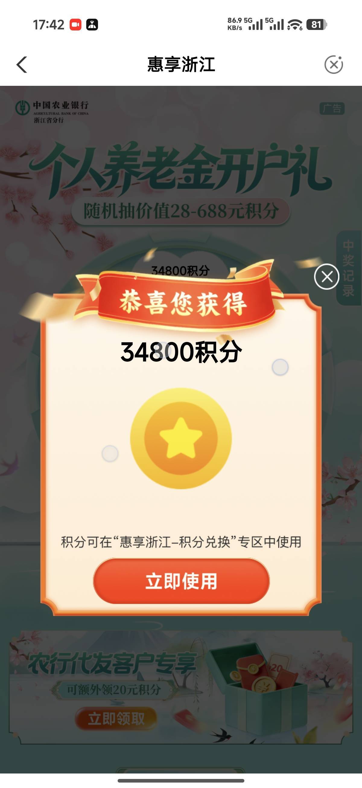 选的杭州地区,兄弟,你养老金绑定的是农行的卡还是其他行的卡