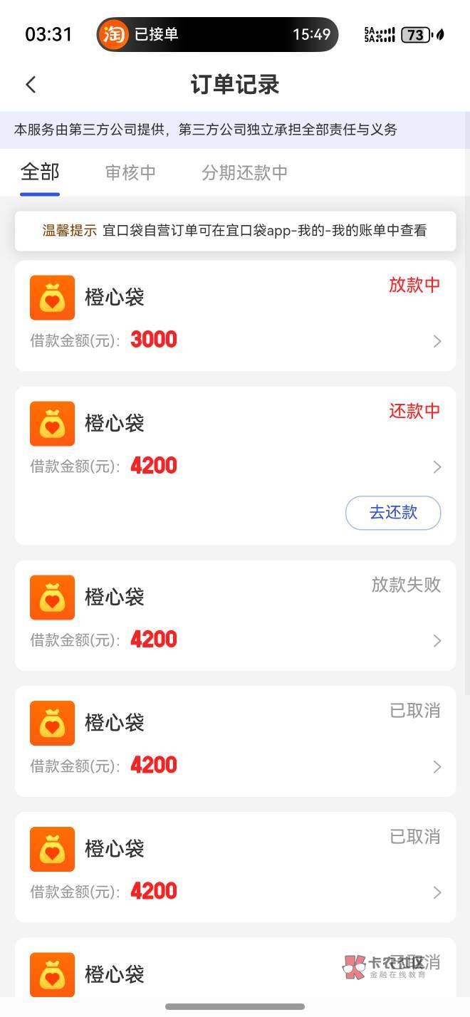 这个跟橙心贷本体app显示的不一样 这里显示放款中 橙心app绝对显示行方审核中