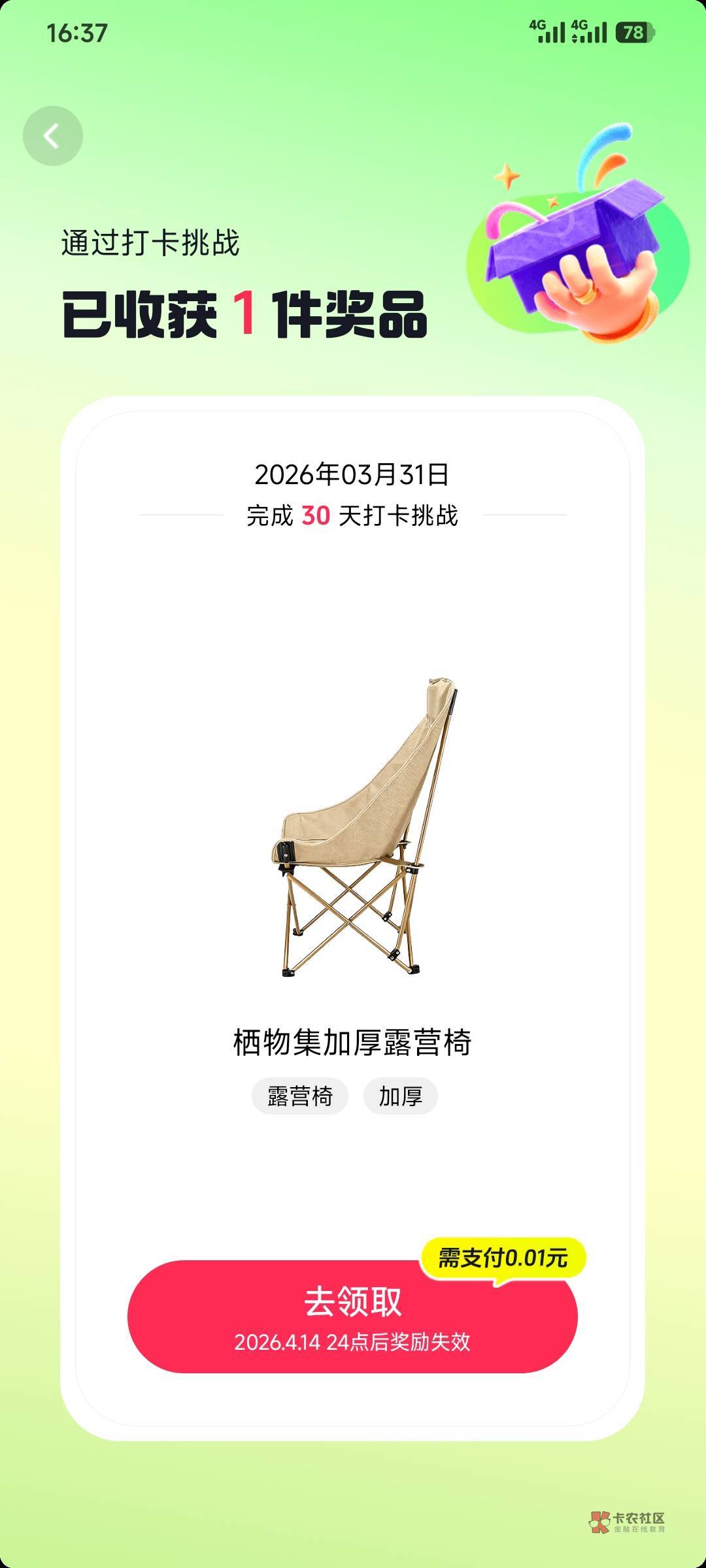 打卡完成点领取这样就是没货,让你付款就别付,等没货