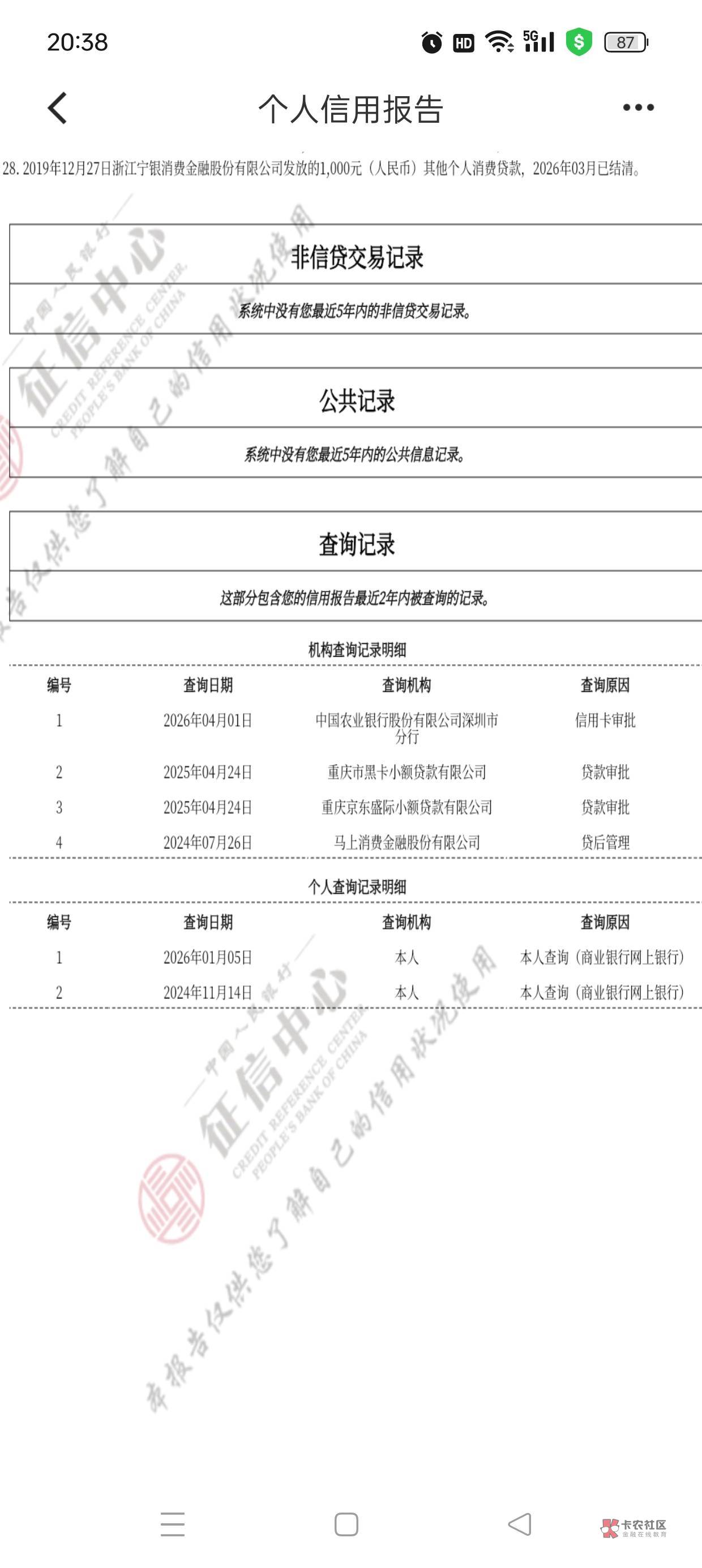 不是,我在建行里面app查的,你看我一月份查询的那次,我就是那时候看见华融呆账的