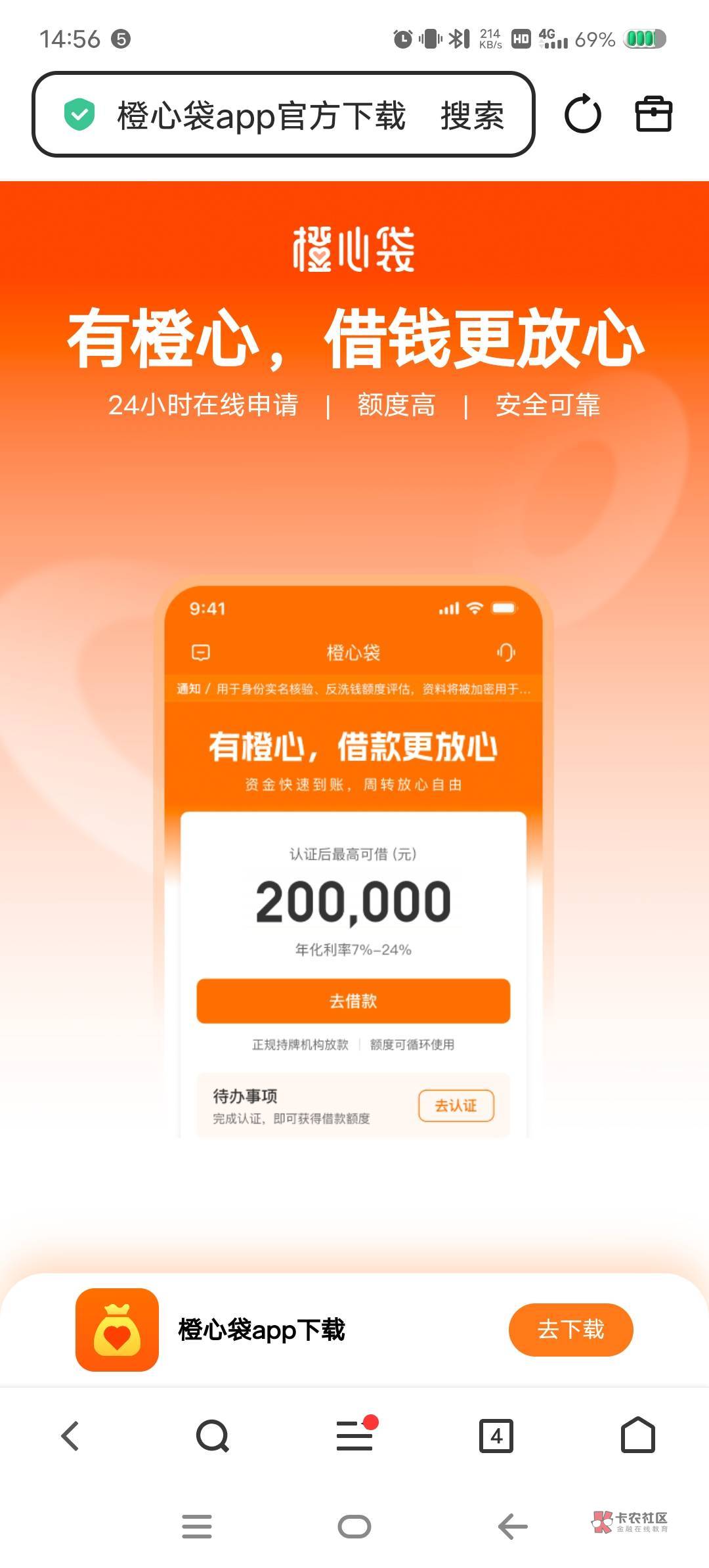 浏览器直接去搜橙心贷