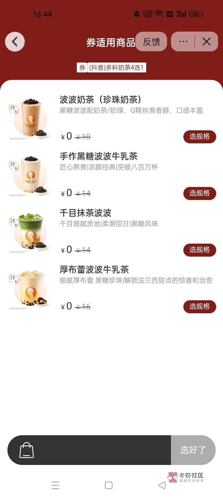 今天就过期了,那个手作黑糖波波牛乳茶可以点大杯的,茶底可以换成去茶