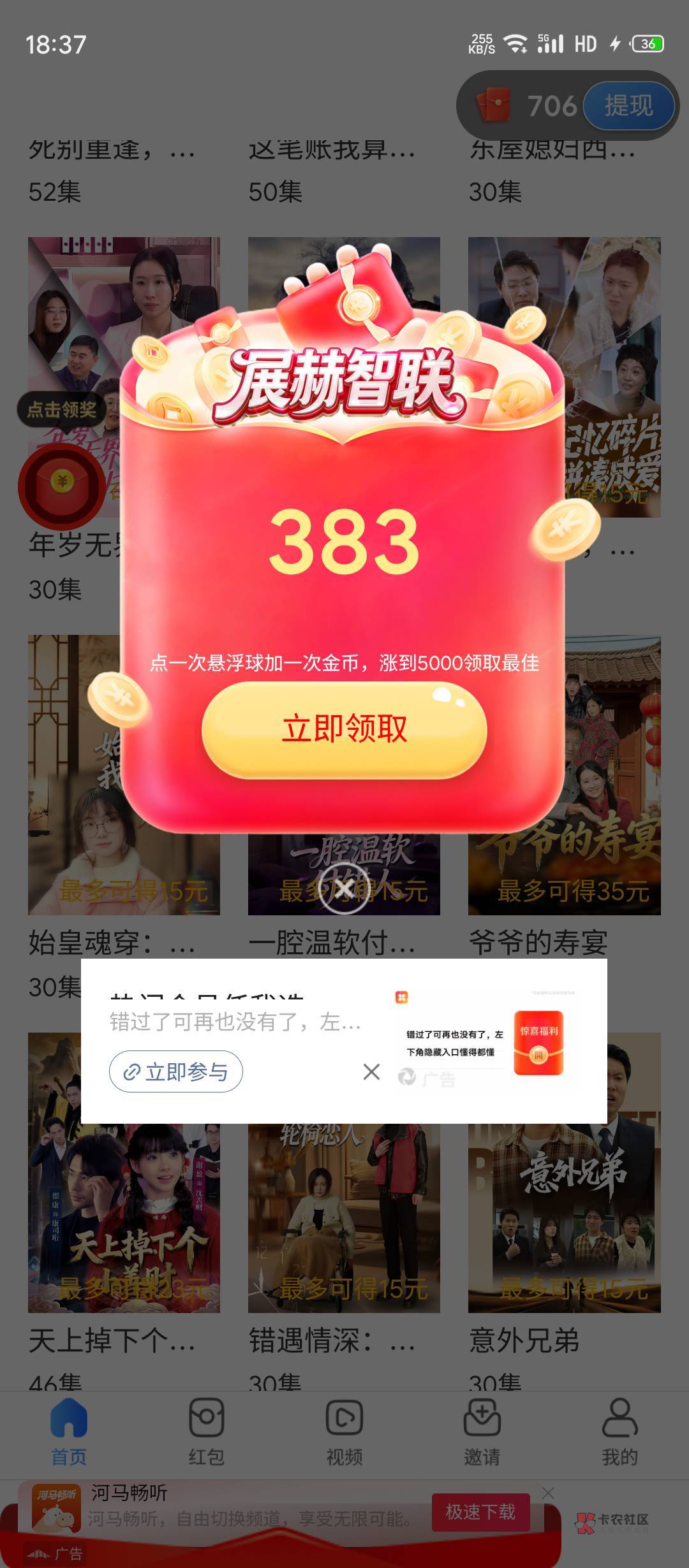搞懂了,刚才提示让我2000金币在去看广告,现在一直点这个领奖,