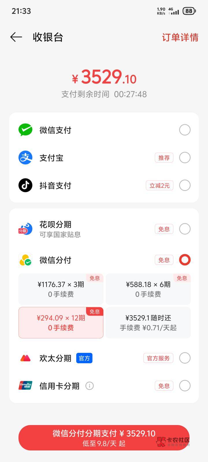 每个人的支付额度不一样还有一万多的,我的最多六千,超过也是额度不足,试试低的