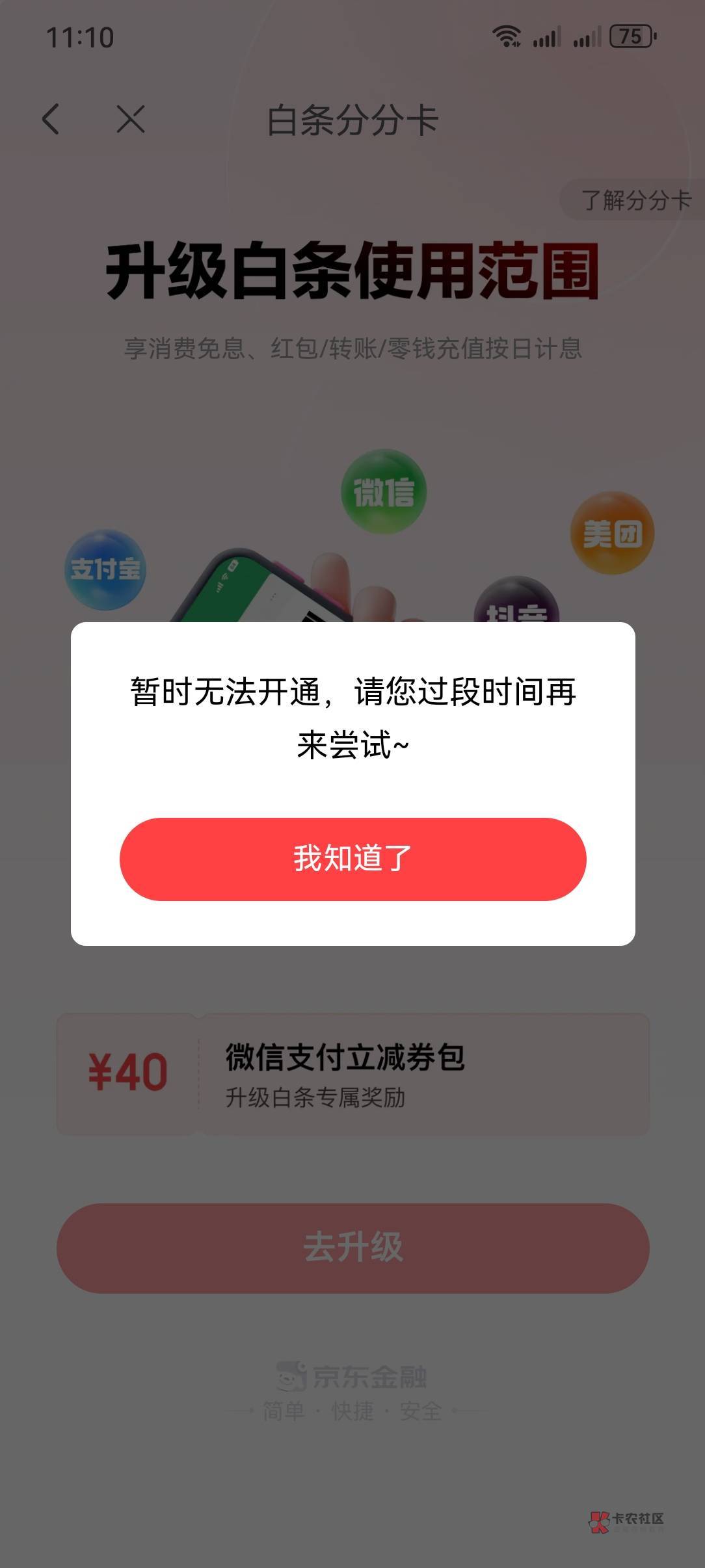 我问客服说白条没有闪付功能了,只有分分卡才行