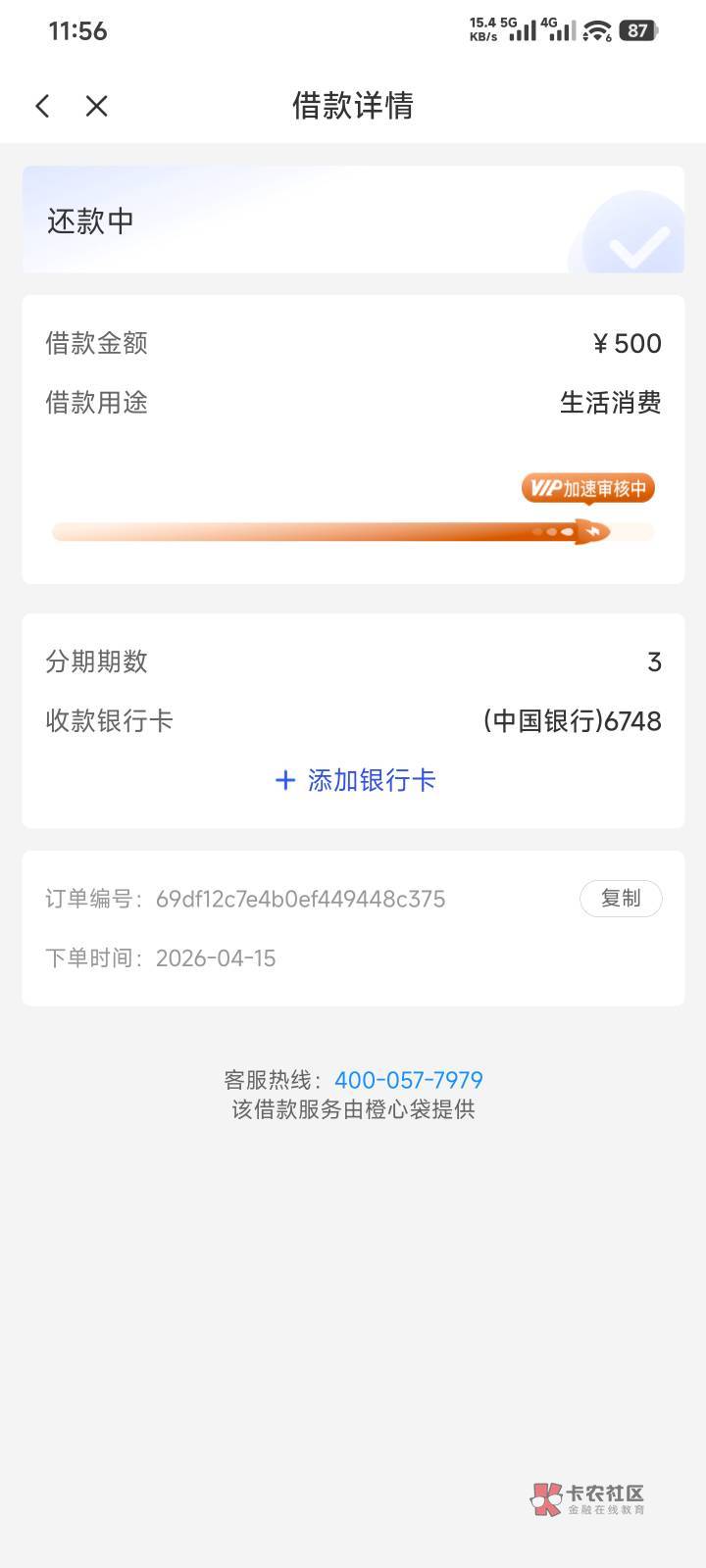 同一天申请的,18号账单还款日,以后逾期2天了,有900放款中,什么时候能轮到我啊,擦,每天都电话加在线客服催促几次,