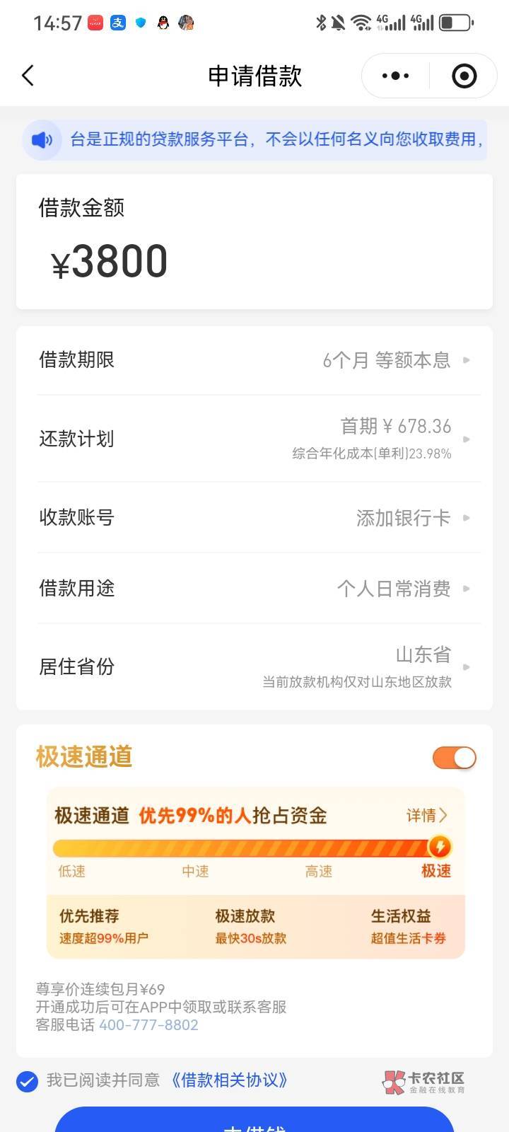 我4100下款了啊,扣了会员798好像,记不清了,好像是798,反正下款就打电话退了