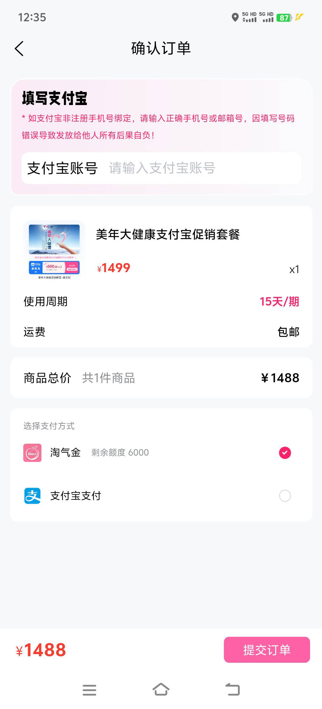 只能支付宝付款 白白浪费我流量