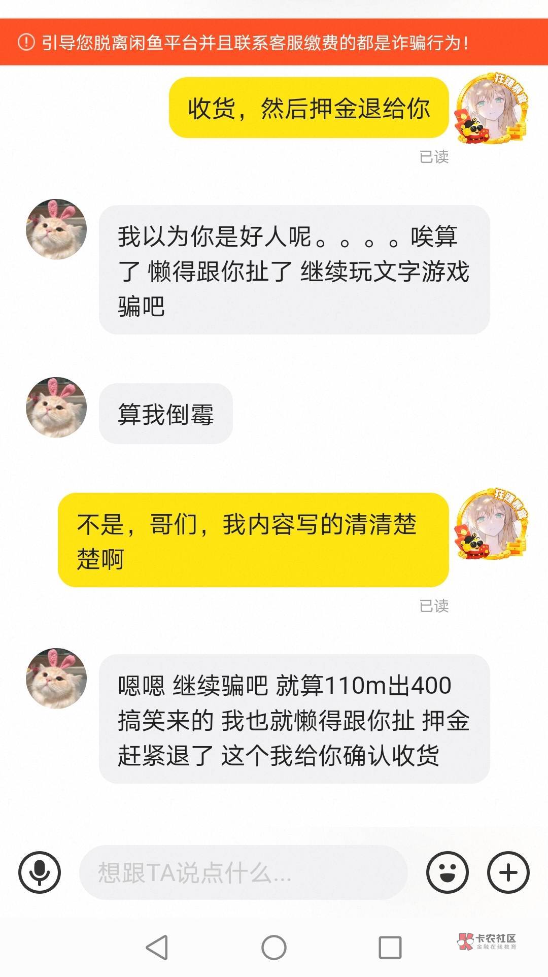 要不要给他退押金?他说押金退给他才给我收货