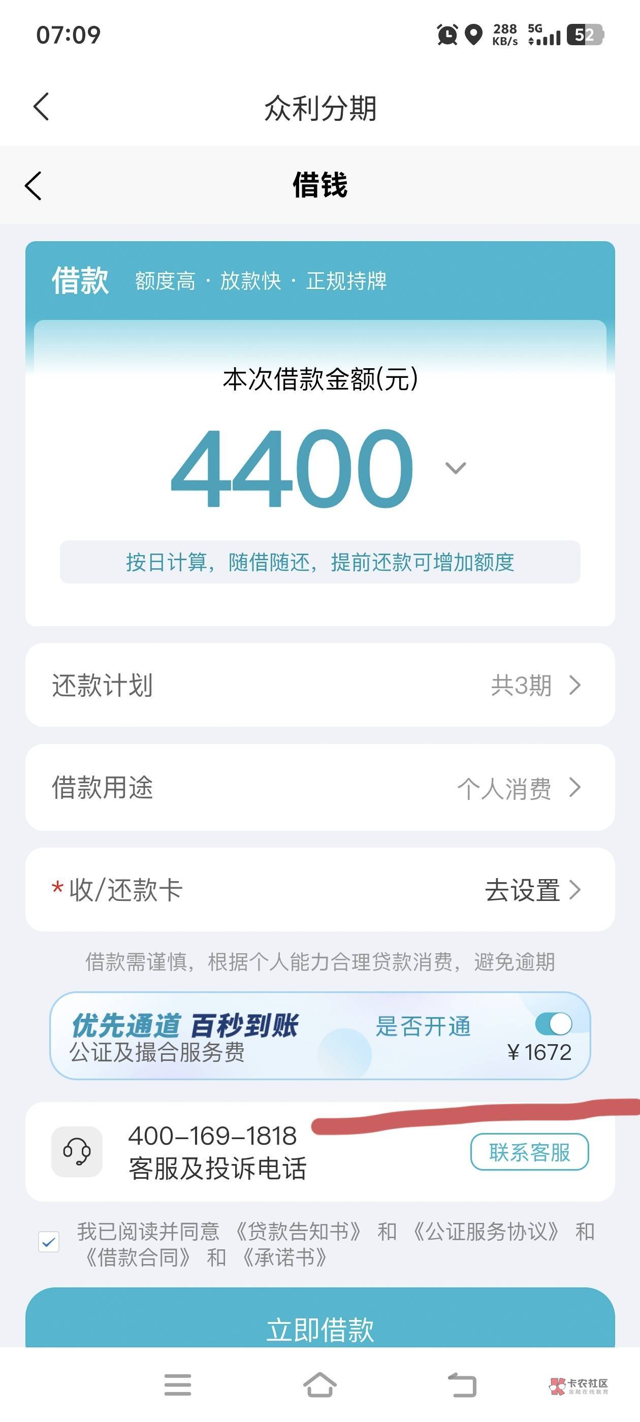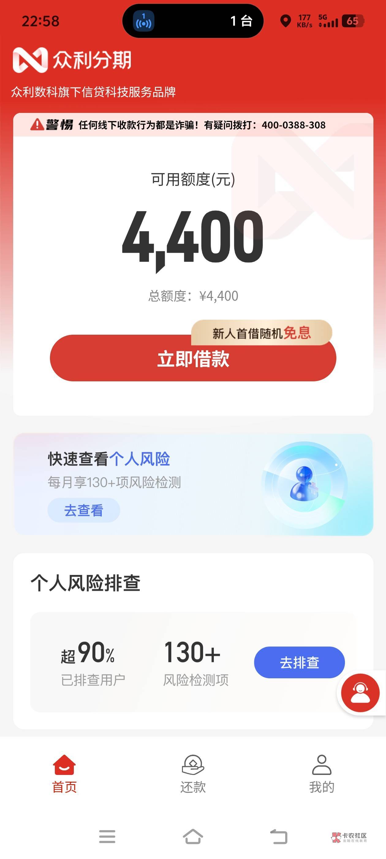 手速快能拦截,我上次就是拦截了,用了20多天几十块钱利息