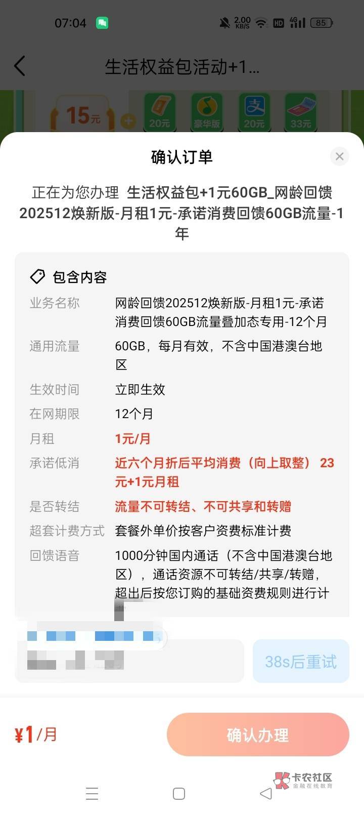 我办理的是29+1打九折,基本上就和我现在27的T餐差不多,然后每个月多10g流量