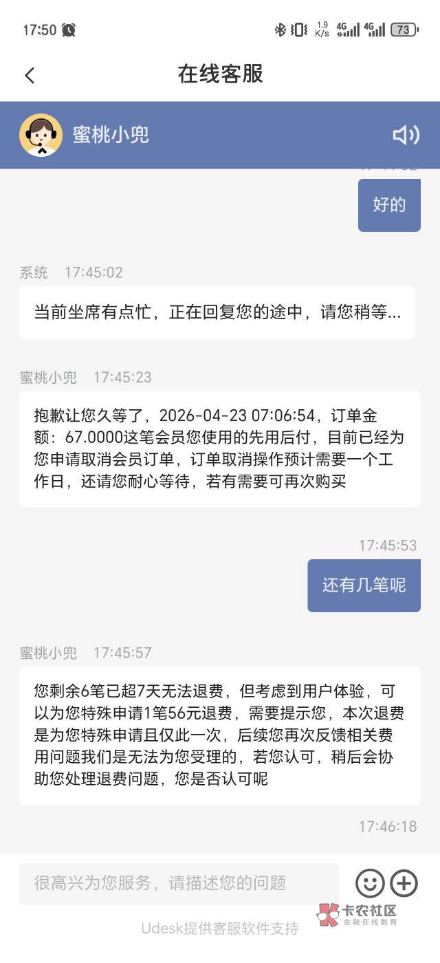 黑猫投诉就会打电话过来了,她一开始也是会说超过7天,要么就是已经使用权益,你就强硬点,说压根没使用任何权益,不退就去别的平台都投诉一遍