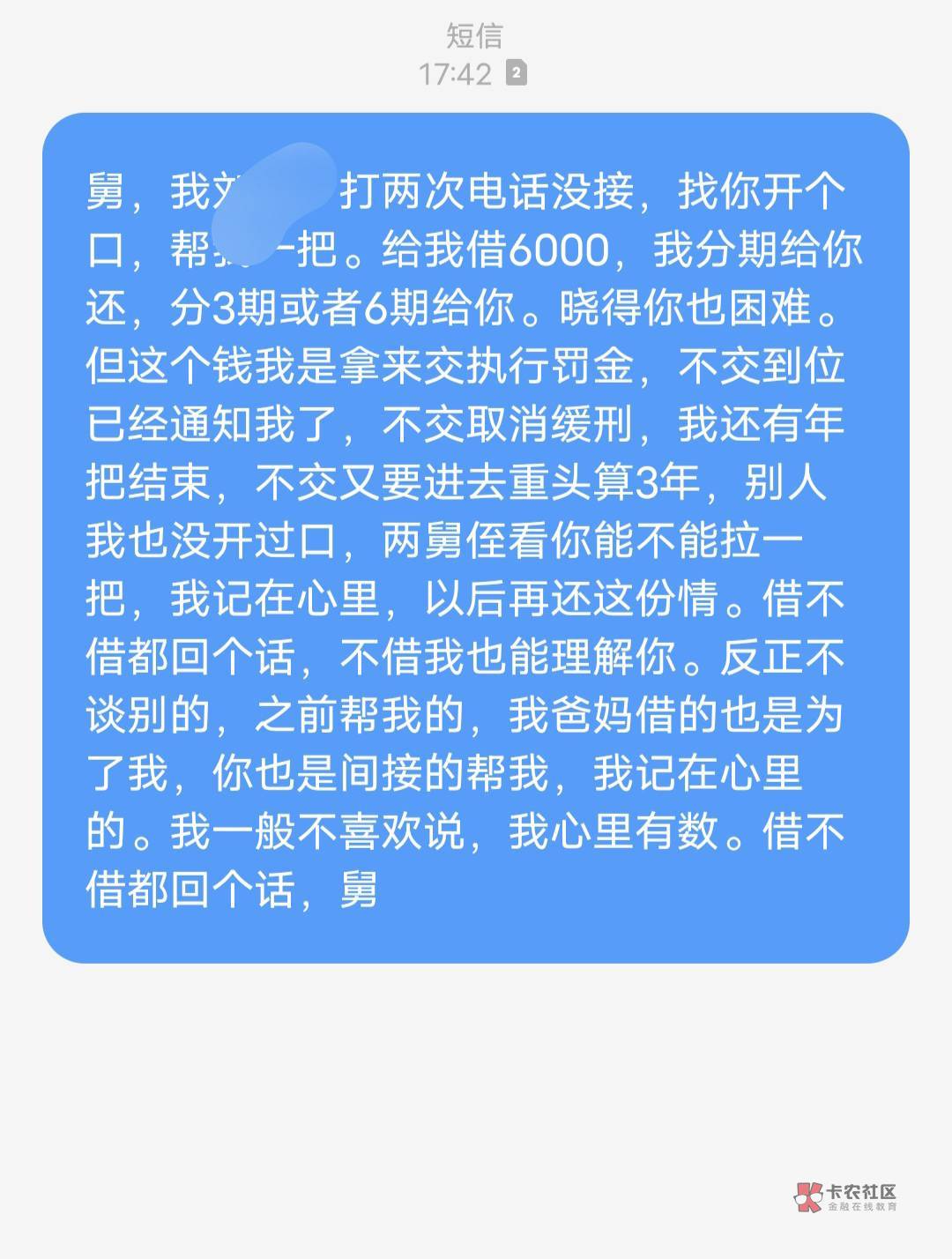 所以你舅不愿意借你,还是说没有啊