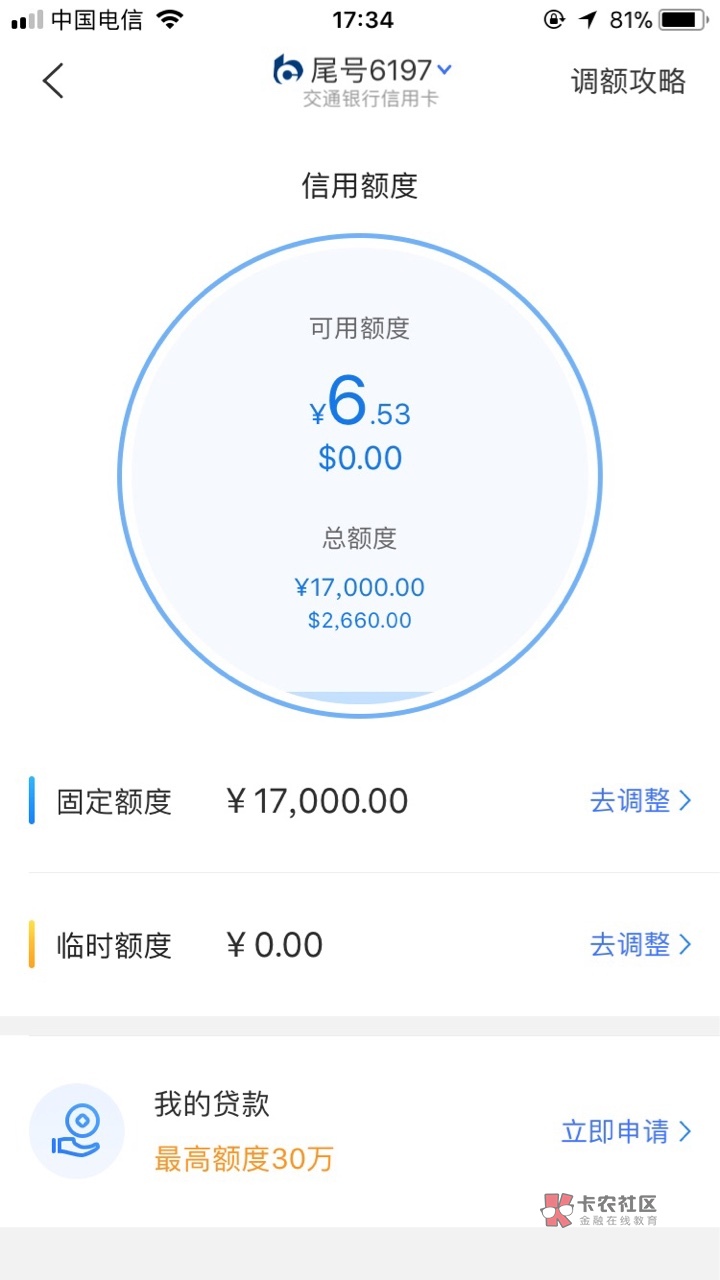 交通我用了四个月的时候给提了4000。六个月的时候给了零时额度两千。