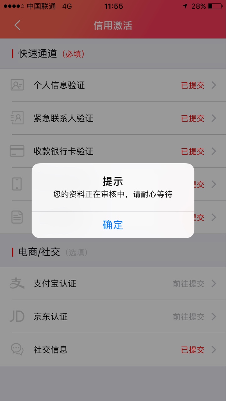 一样的,点激活信用显示还在审核中