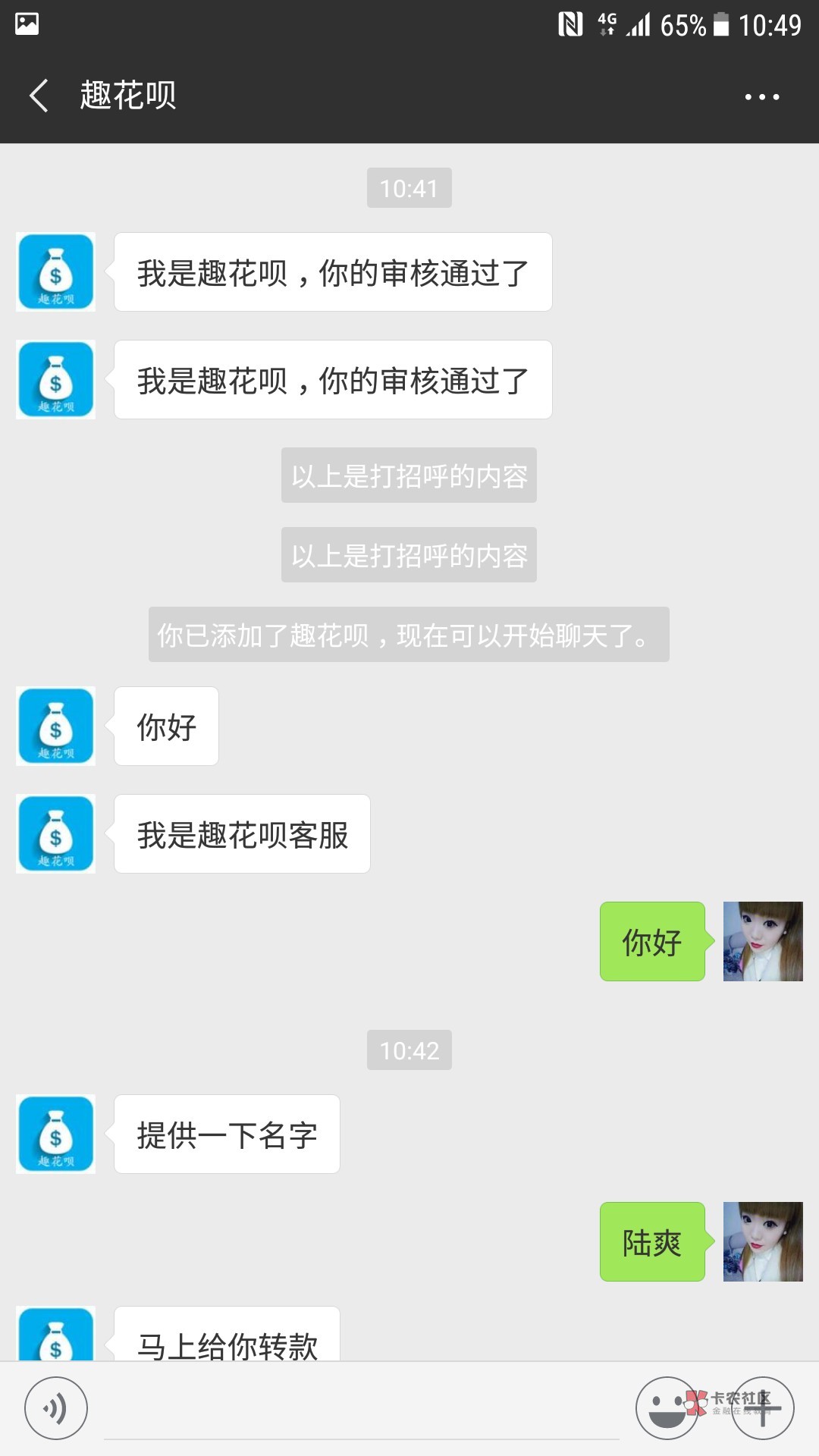 只要收到短信,然后去体交就完事,客服加你,问下姓名就放款