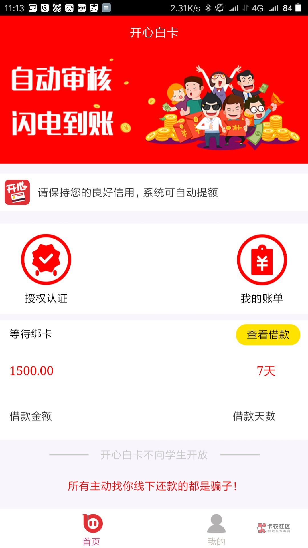 开心白卡真的下款了嘛?多久下的