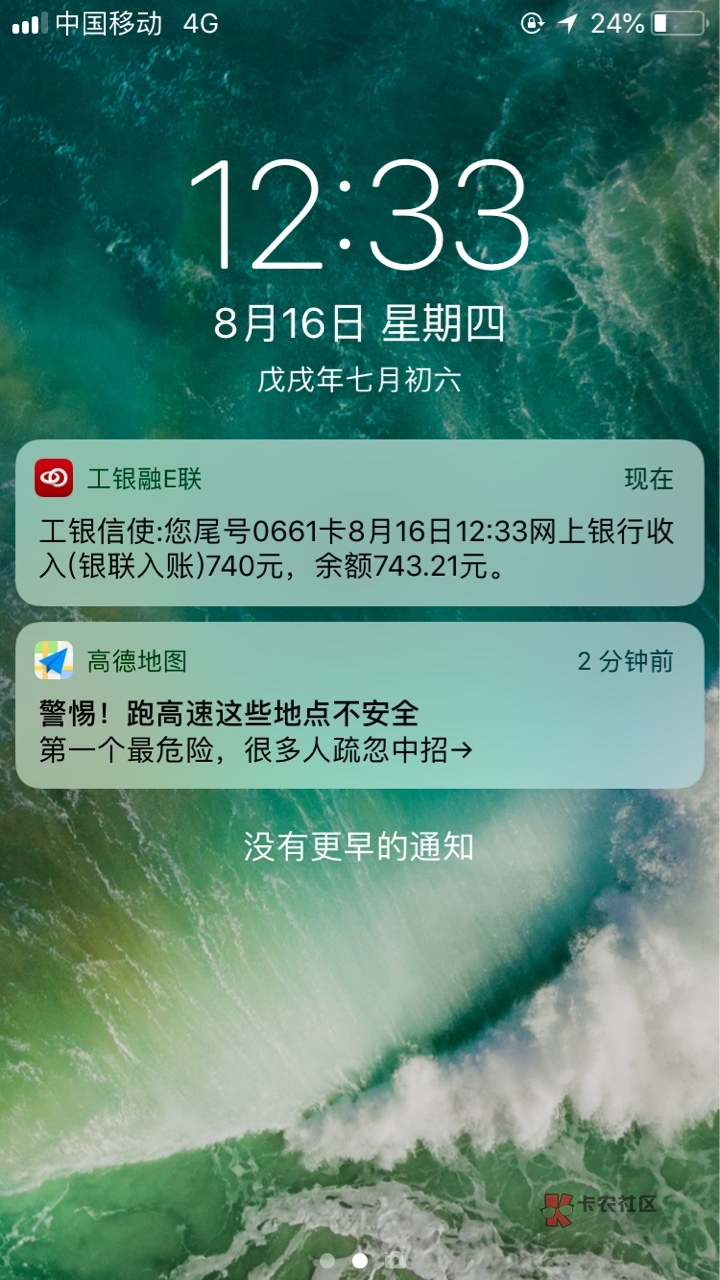 没有短信提醒的,自己注意软件,我就看见钱到账了