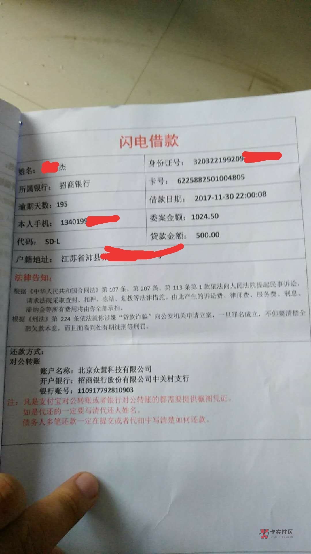 闪电借款逾期1万,1年了