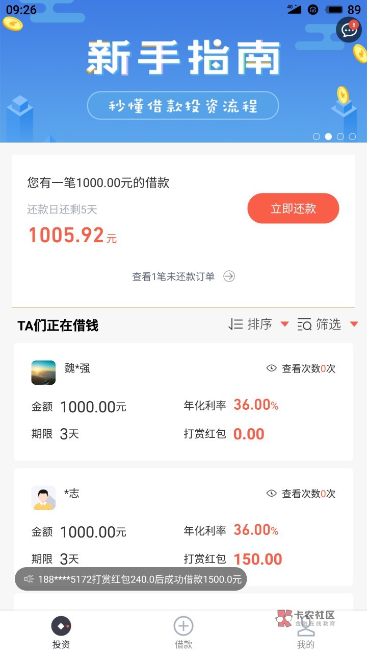 刚开始68现在借款成功一百多