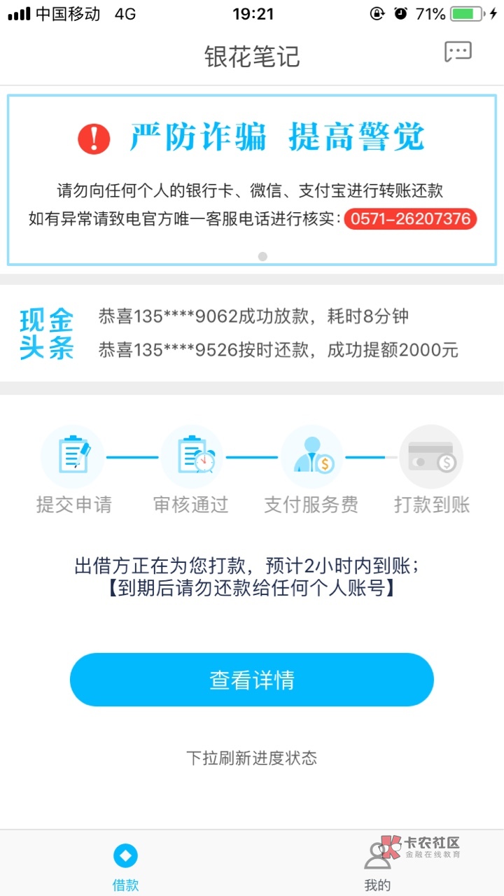 是啊,我跟银花花同时申请的银花花几分钟就到了,这个等了三个小时了,不知道现在这点还放款吧